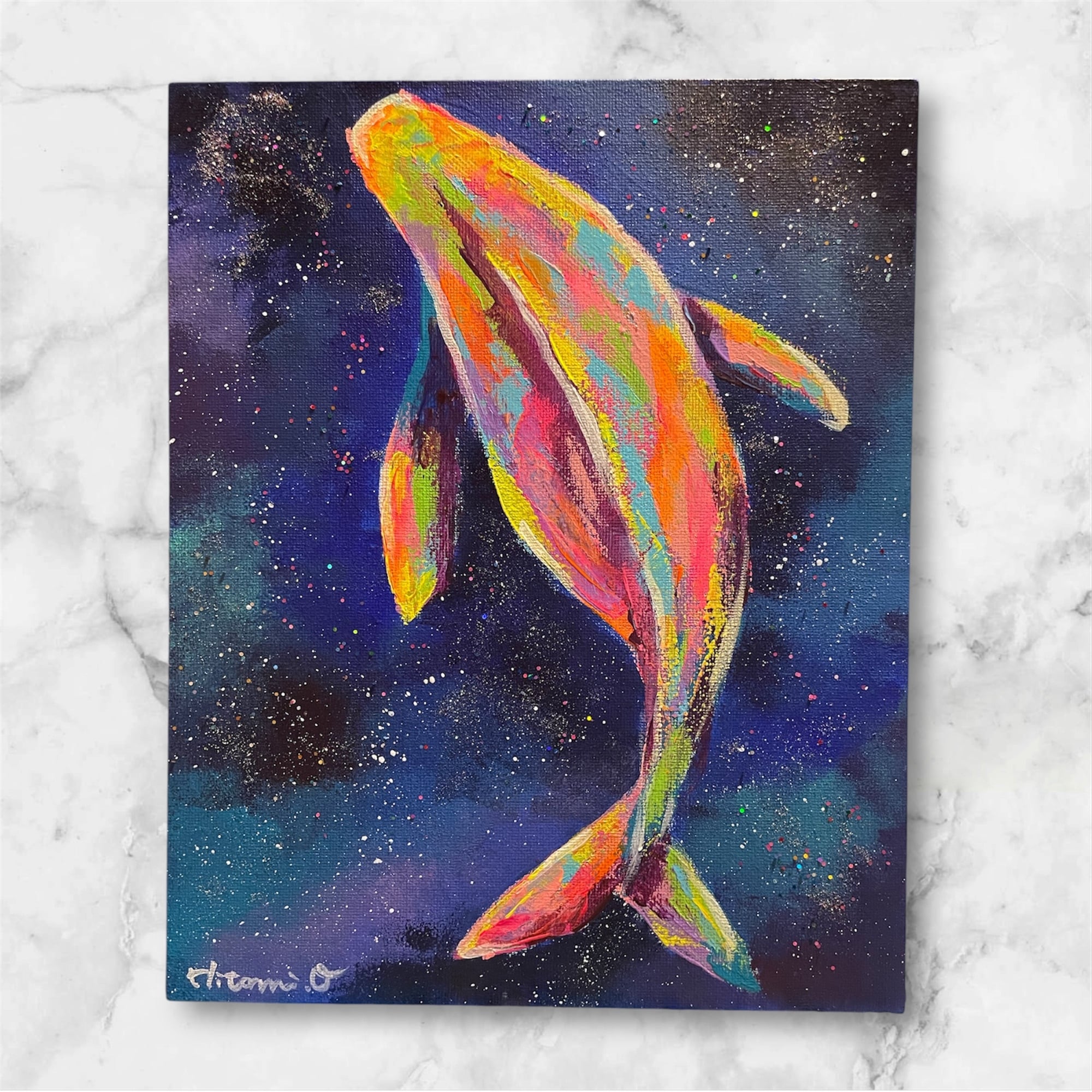 【A-110/25】原画 絵画 クジラ 動物画 キャンバス 真作 インテリア 作品証明書付 アート 現代アート ポップアート