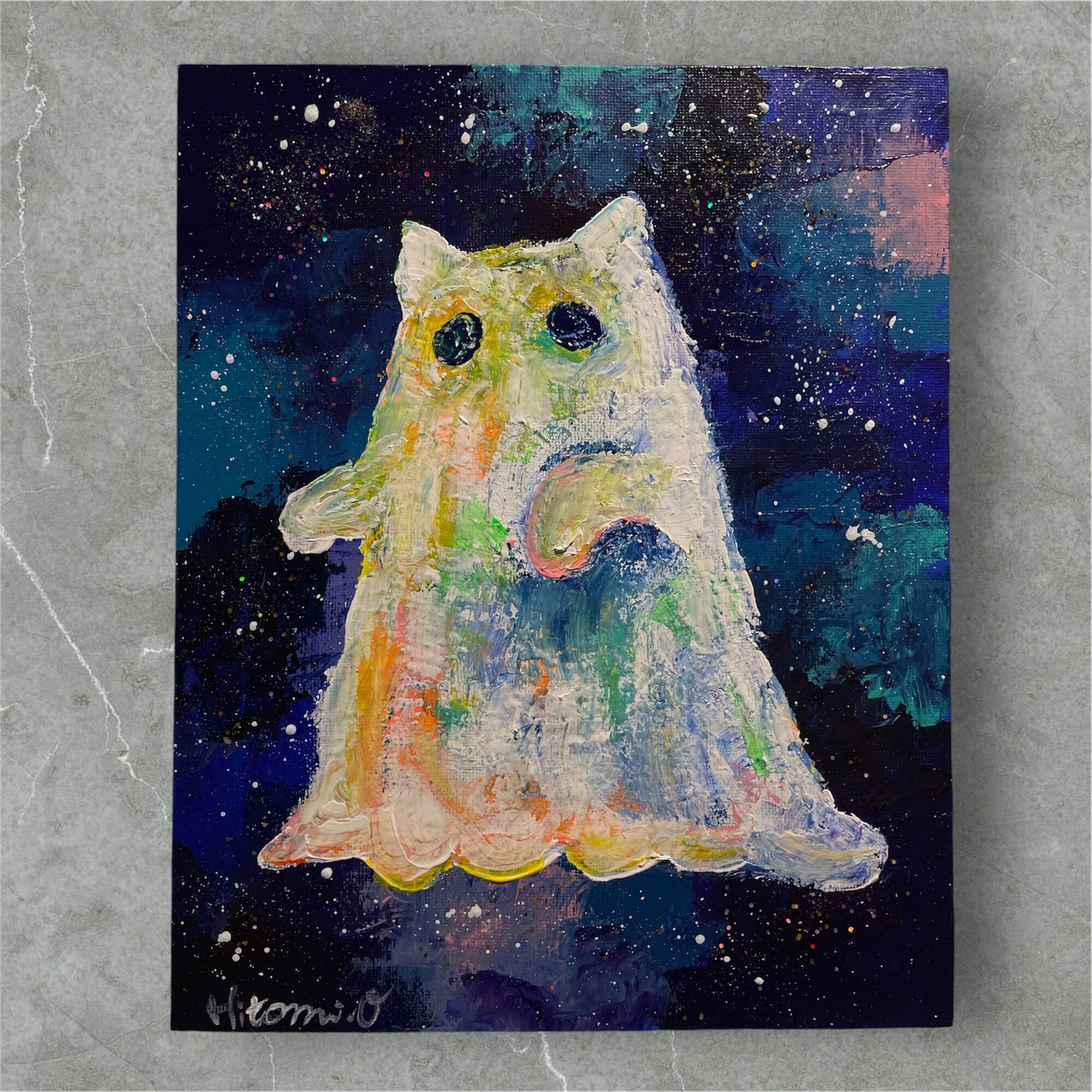【A-118/25】原画 絵画 動物画 猫 ハロウィン 夜空 キャンバス 真作 インテリア 作品証明書付 アート 現代アート ポップアート