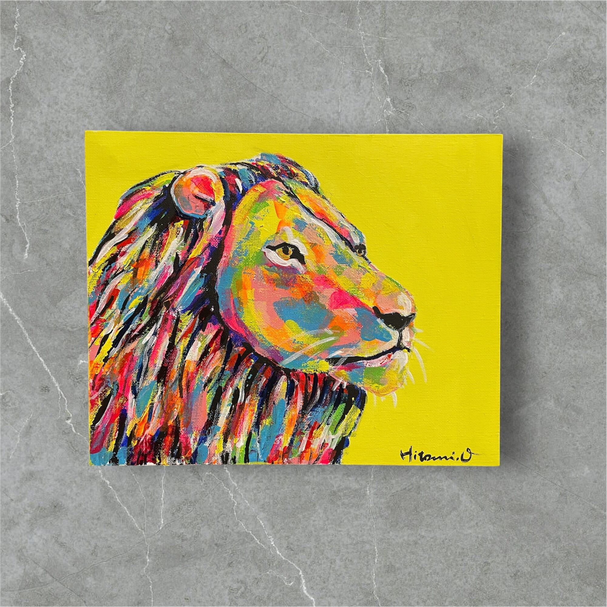 【A-143/25】【個展展示】原画 絵画  動物画 ライオン キャンバス 真作 インテリア 作品証明書付 アート 現代アート