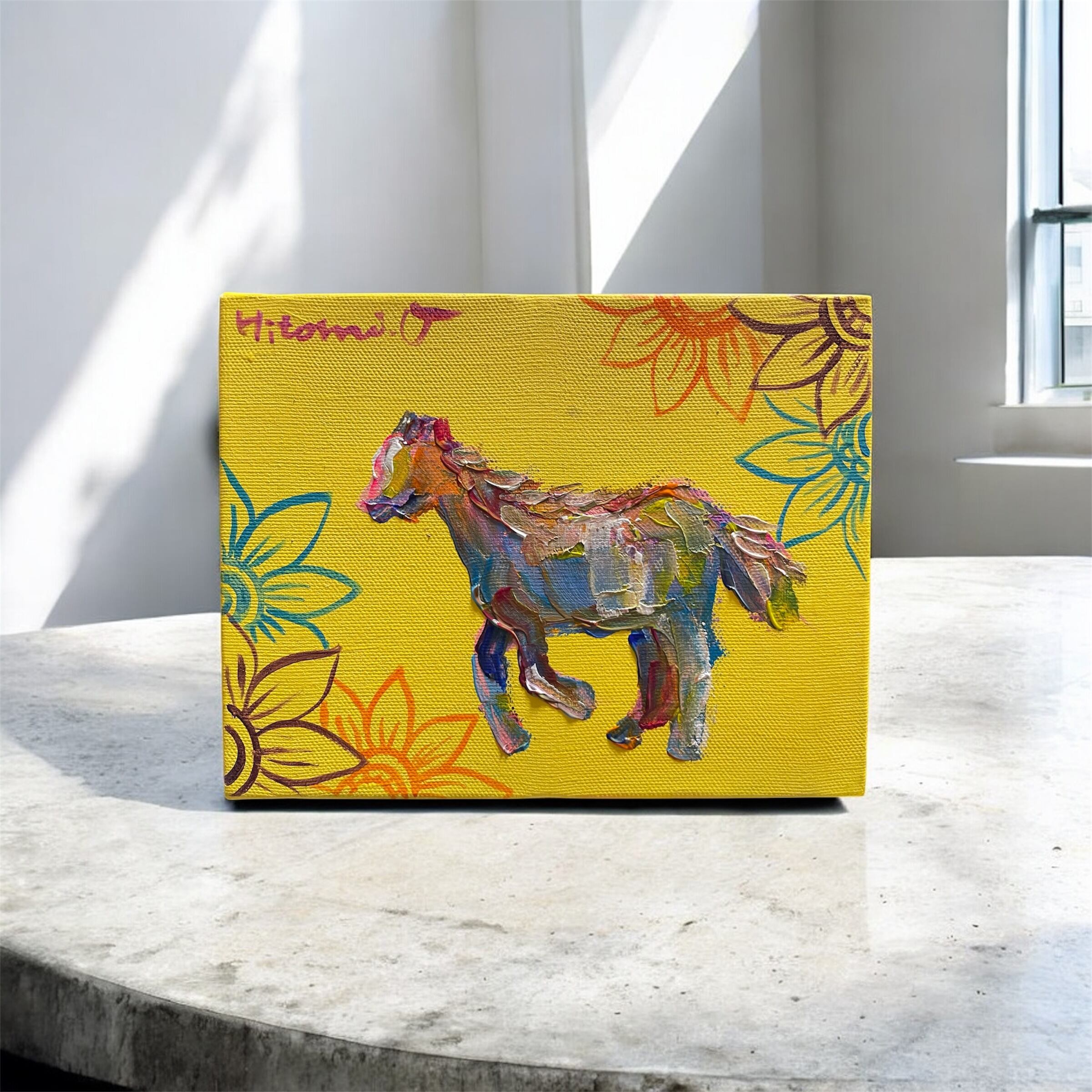【A-9/26】原画 絵画 馬 干支 動物画 キャンバス 真作 インテリア 作品証明書付 アート 現代アート