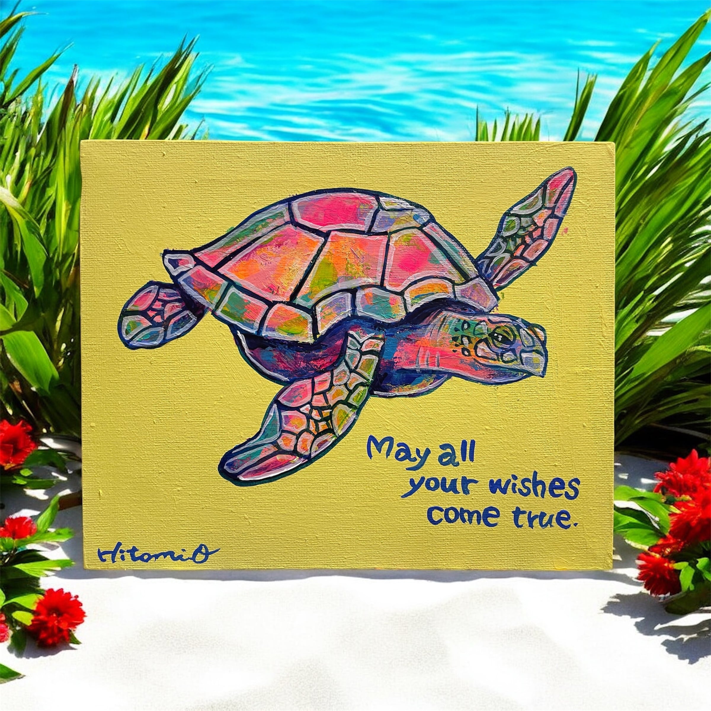 【A-22/26】原画 絵画 動物画 ウミガメ キャンバス 真作 インテリア 作品証明書付 アート 現代アート
