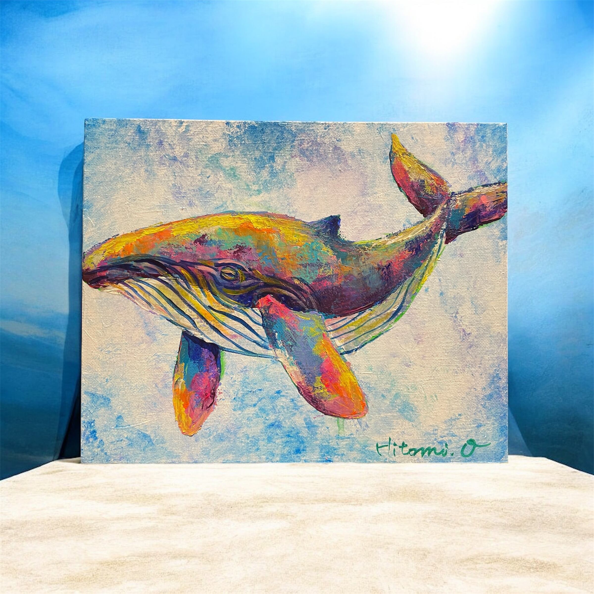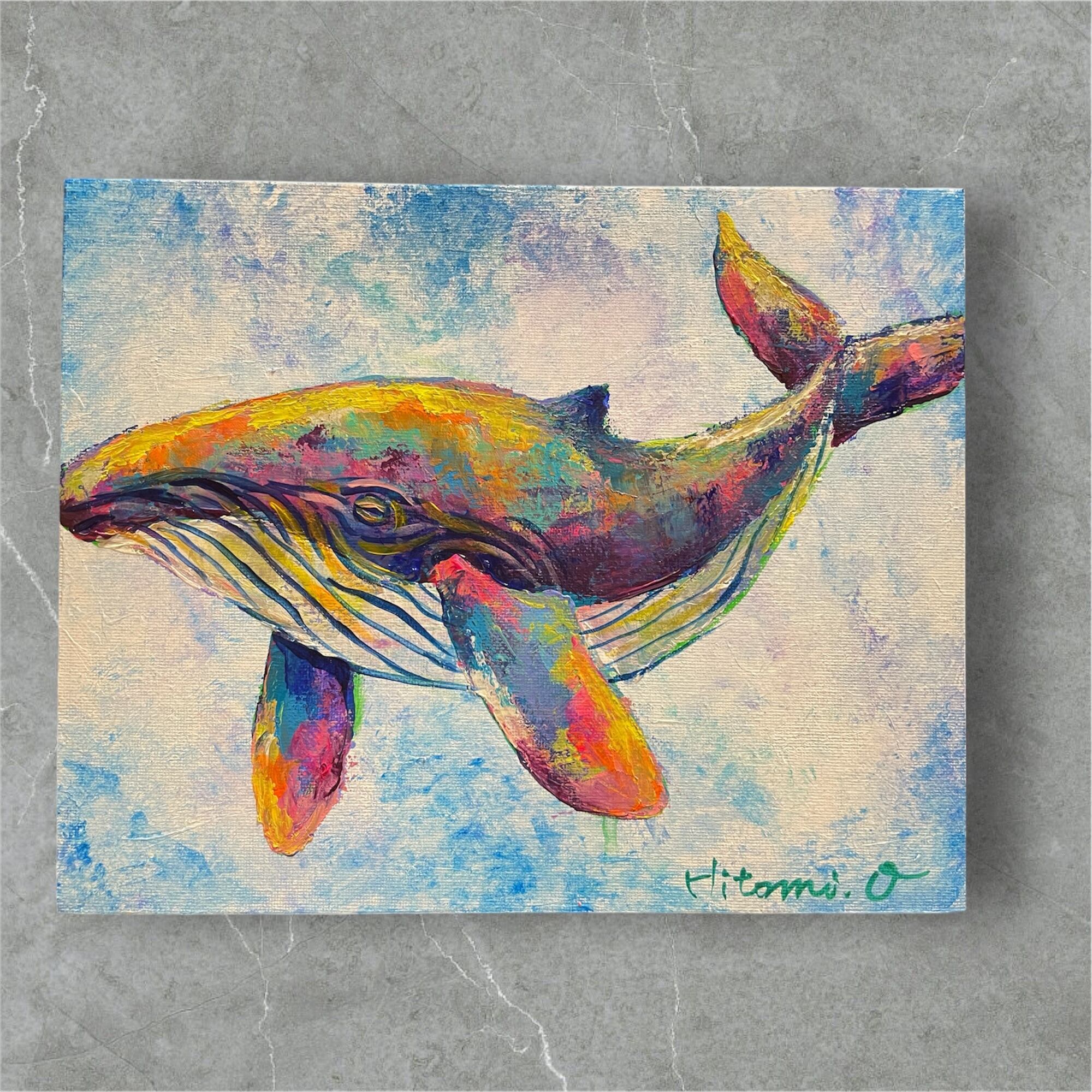【A-23/26】原画 絵画 動物画 クジラ キャンバス 真作 インテリア 作品証明書付 アート 現代アート