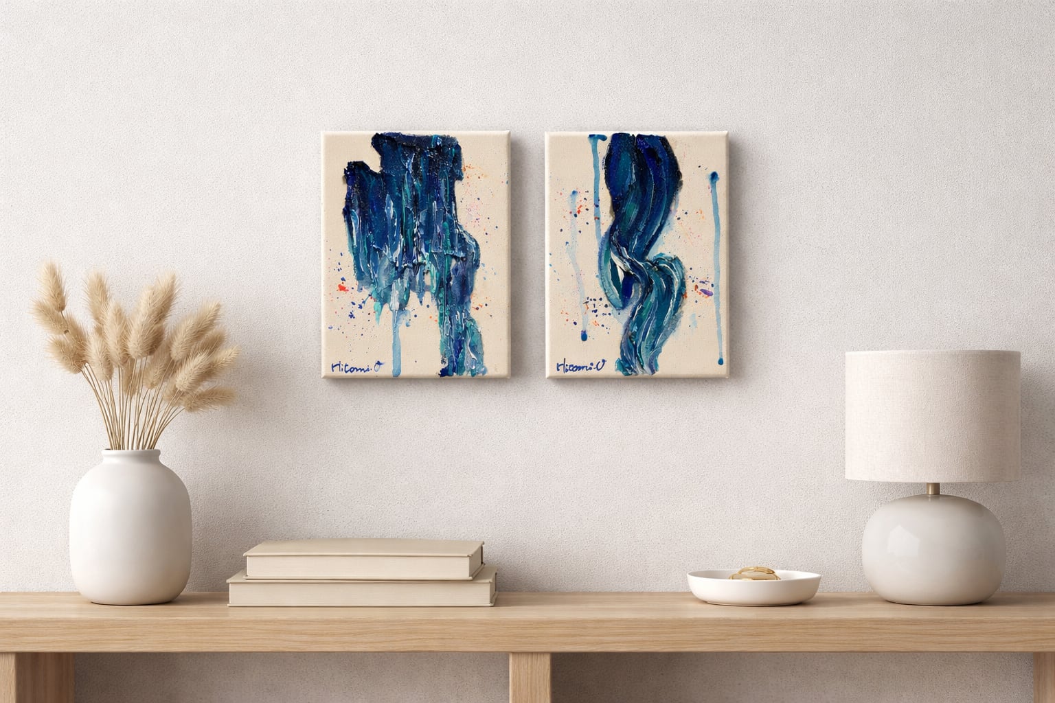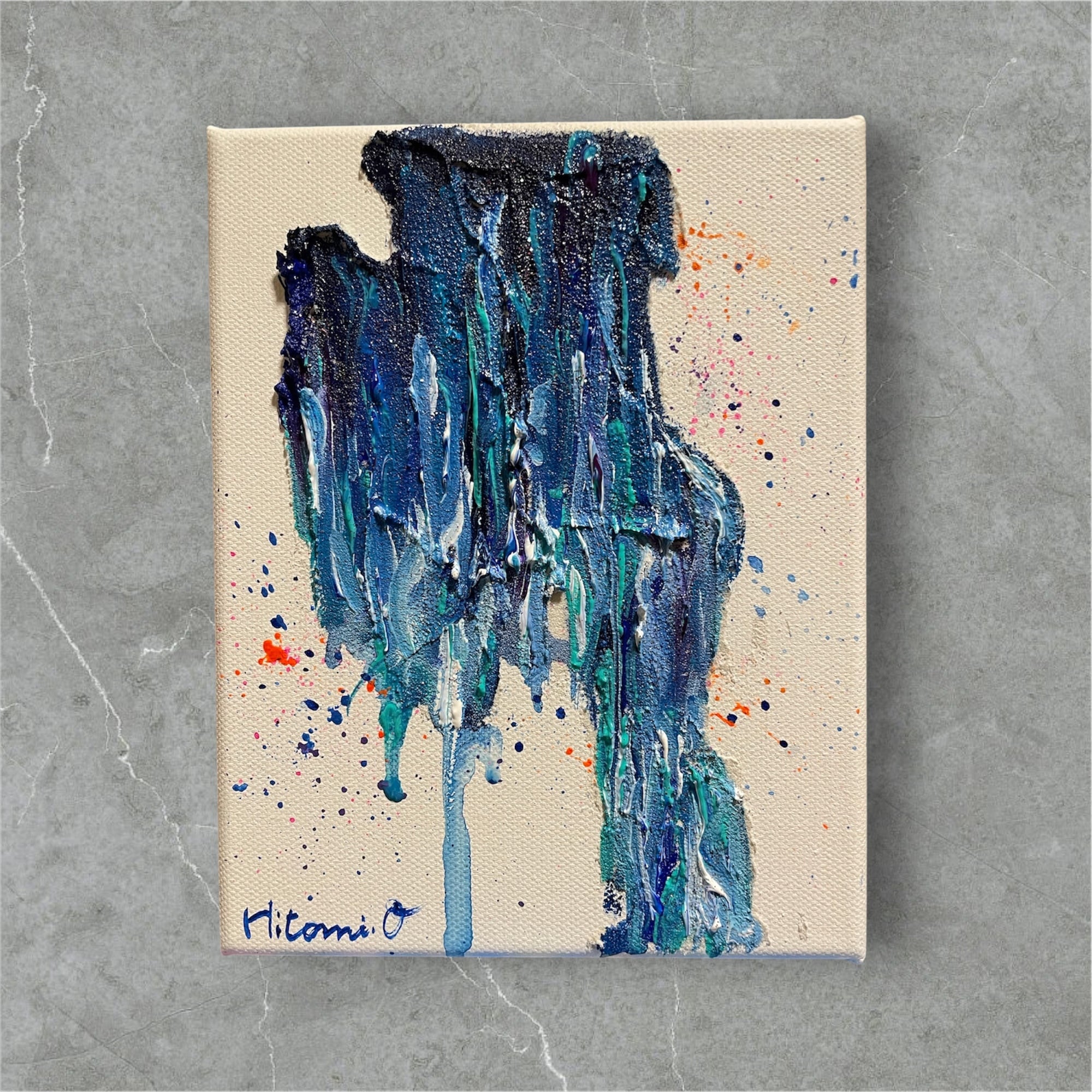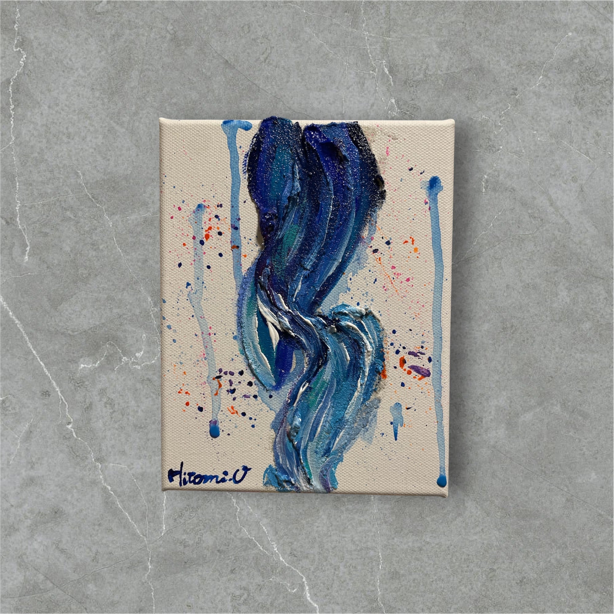 【A-51/26】2点セット● 抽象画 原画 小さめアート F0キャンバス 青 癒し おしゃれインテリア アートパネル 絵画 モダンインテリア 現代アート