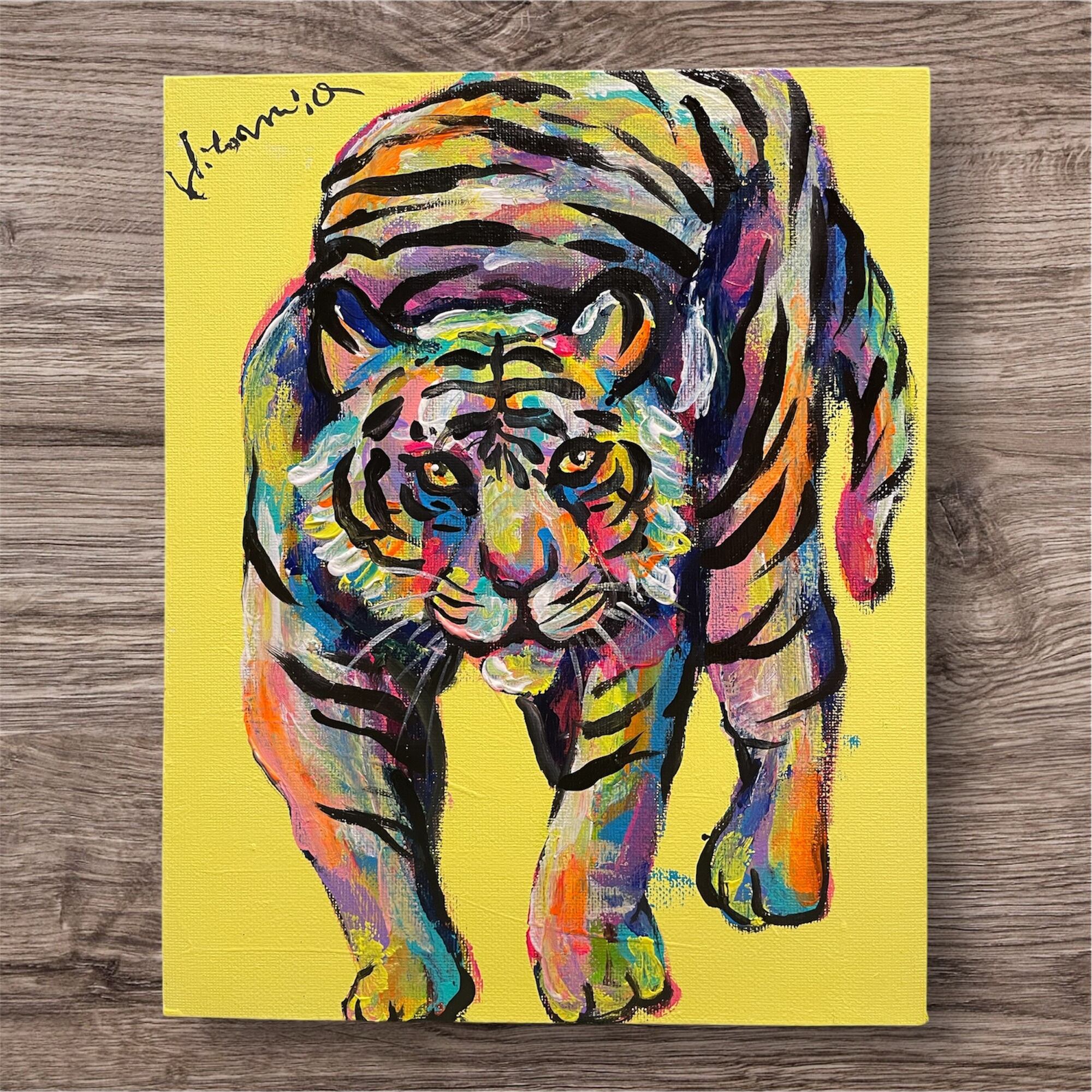 【A-61/26】原画 絵画 動物画 虎 カラフル キャンバス 真作 インテリア 作品証明書付 アート 現代アート