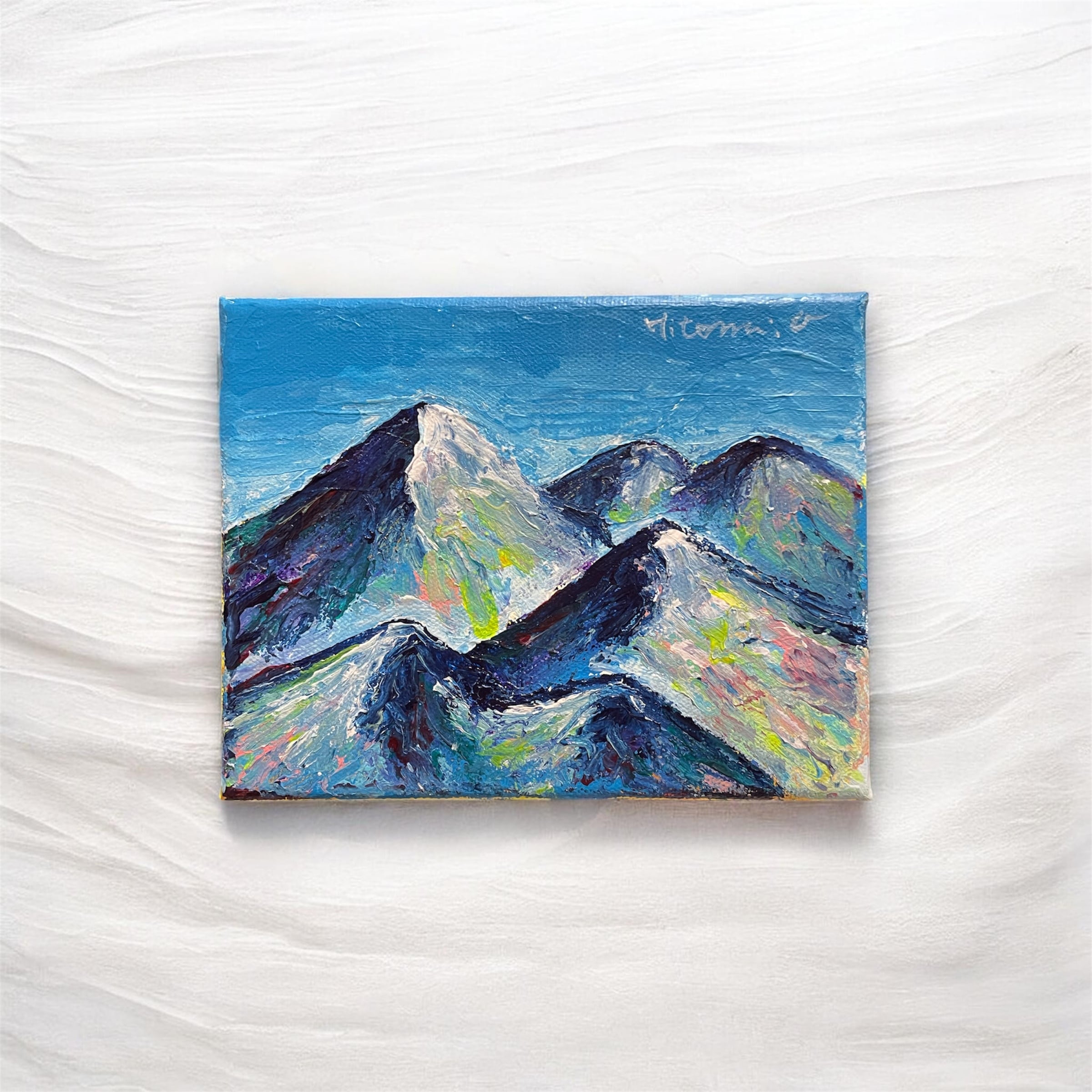 【A-90/26】原画 絵画 抽象画 山脈 山の絵 カラフル キャンバス 真作 インテリア 作品証明書付 アート 現代アート