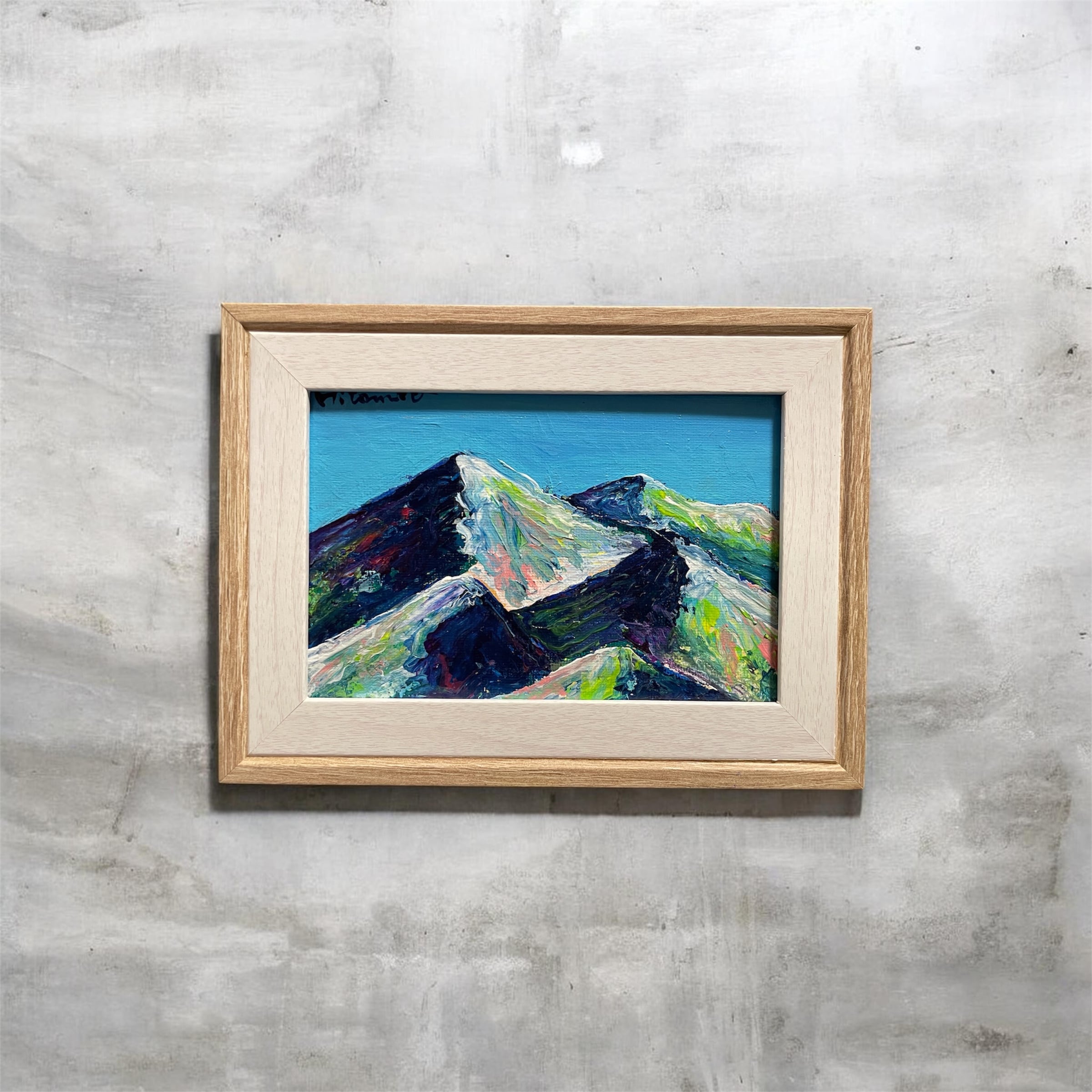 【A-91/26】原画 絵画 山脈 山の絵 額付き 額装 カラフル キャンバス 真作 インテリア 作品証明書付 アート 現代アート