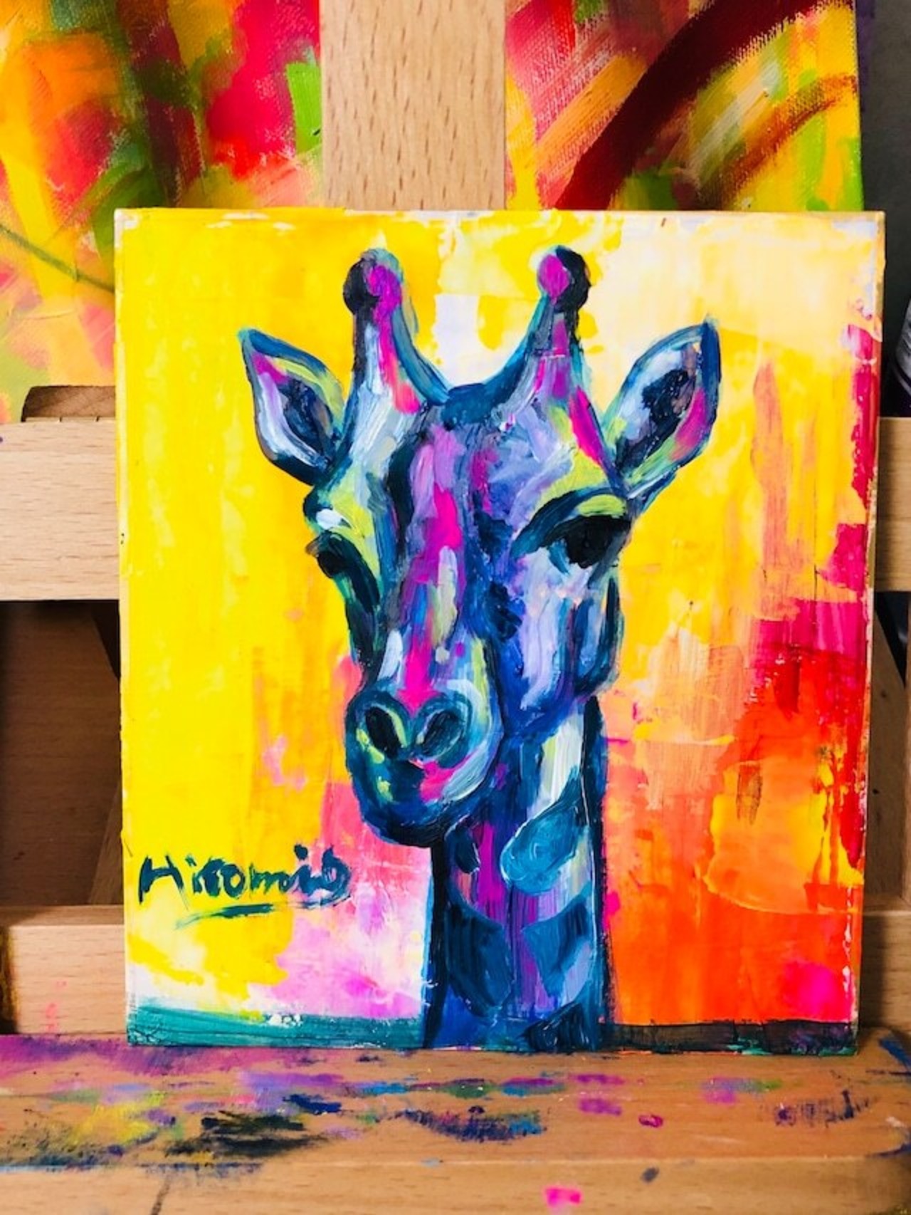 【Y-33】油絵『キリン』額なし