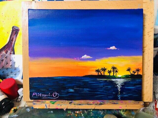 【A-21】アクリル画『夏の夕暮れ』