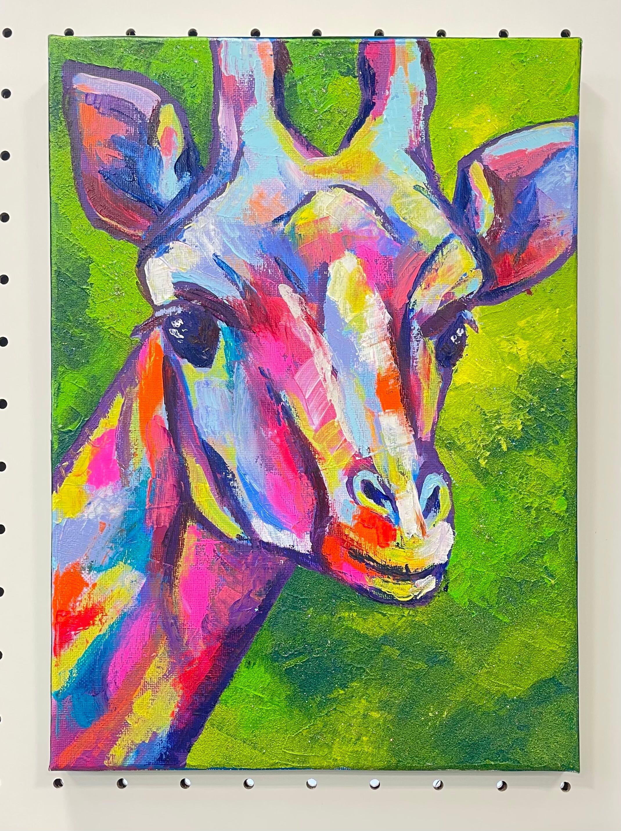 【Y-107】油彩画 油絵 キャンバス 原画 キリン