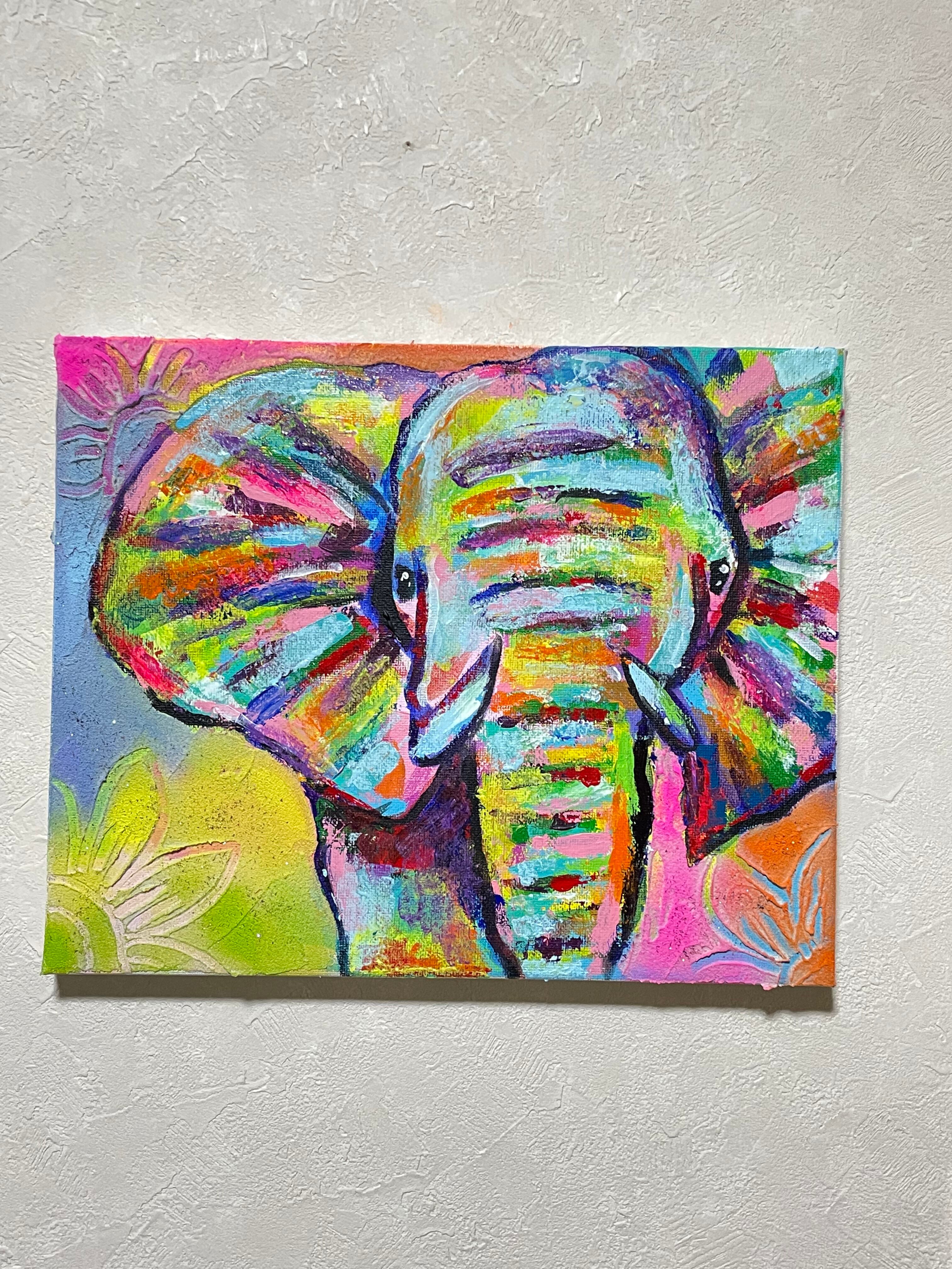 【Y-28/23】油彩画 油絵 キャンバス 原画 ゾウ 現代アート