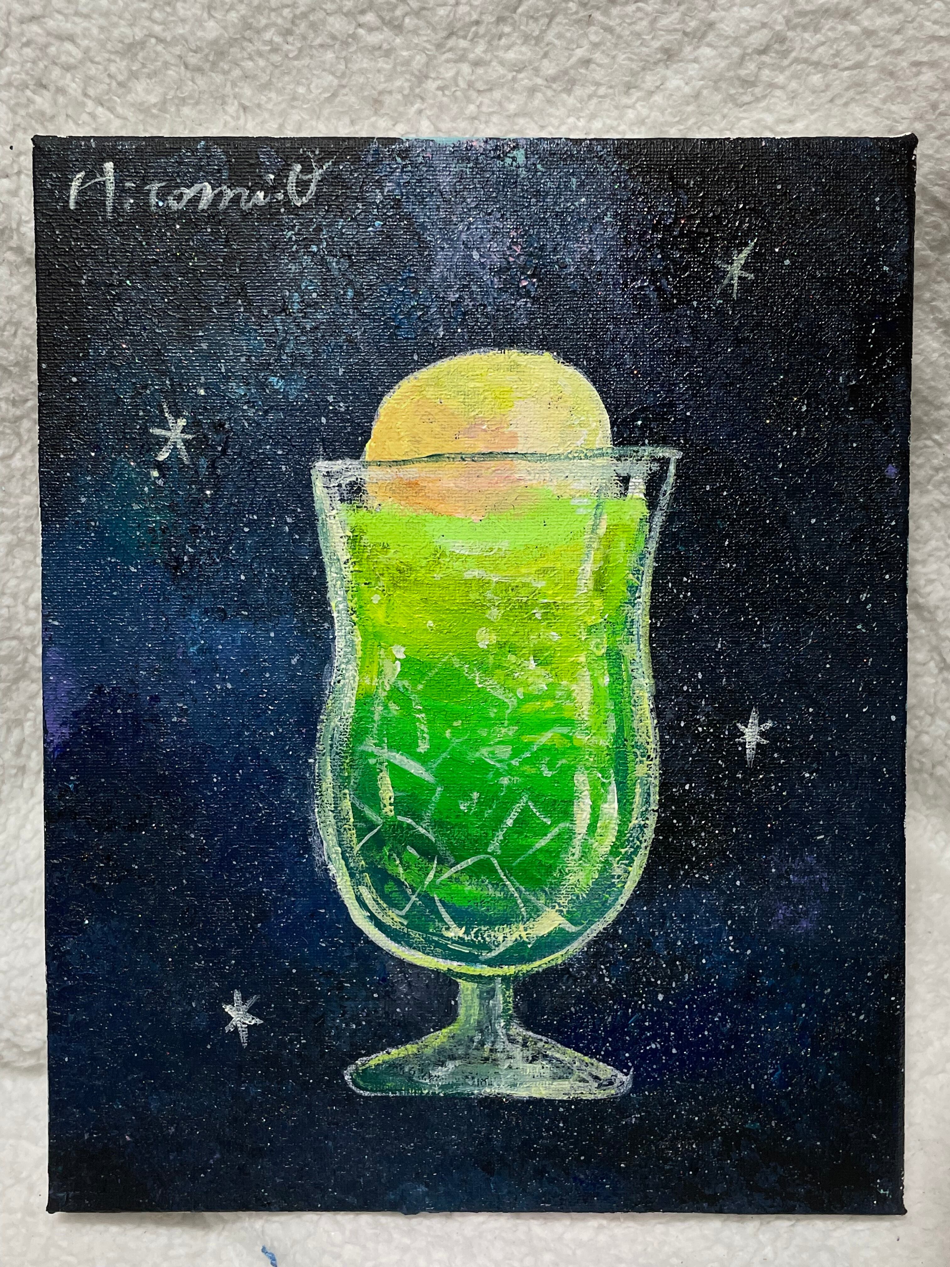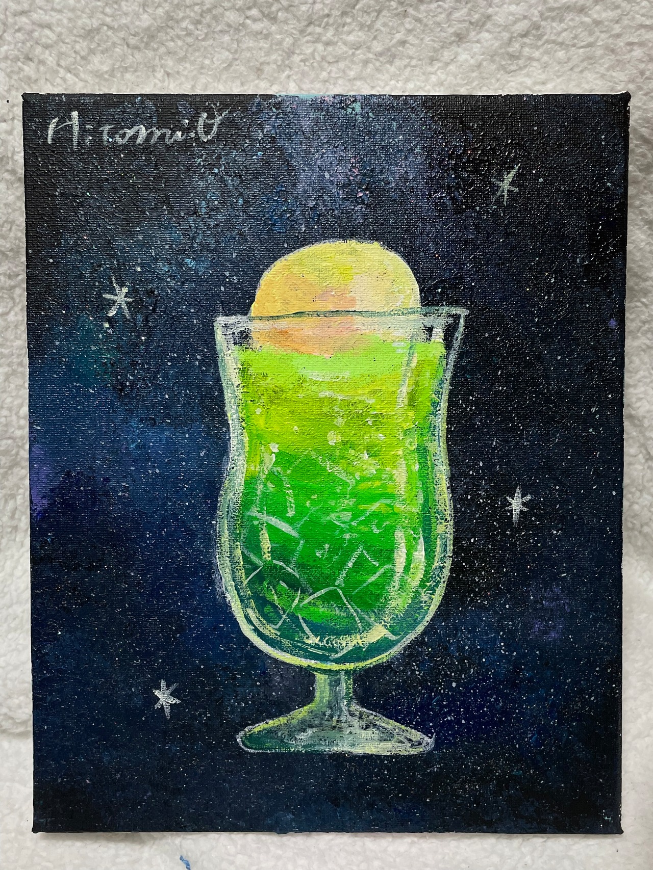 【A-77/23】アクリル画 原画 絵画 現代アート キャンバス 夜空 クリームソーダ