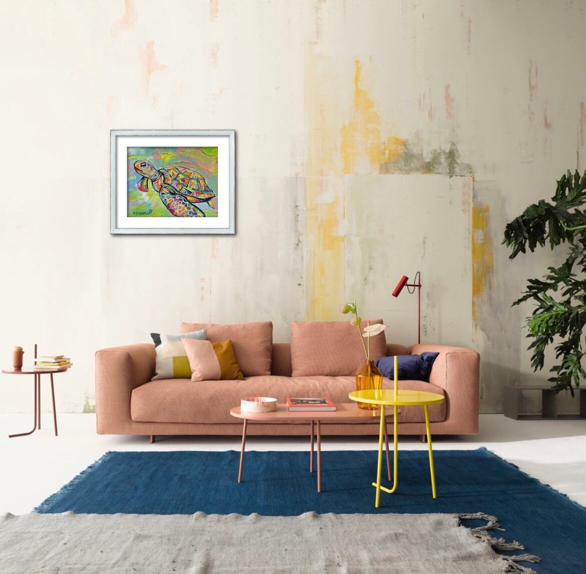 【A-89/23】ウミガメ アクリル画 原画 絵画 現代アート キャンバス 真作
