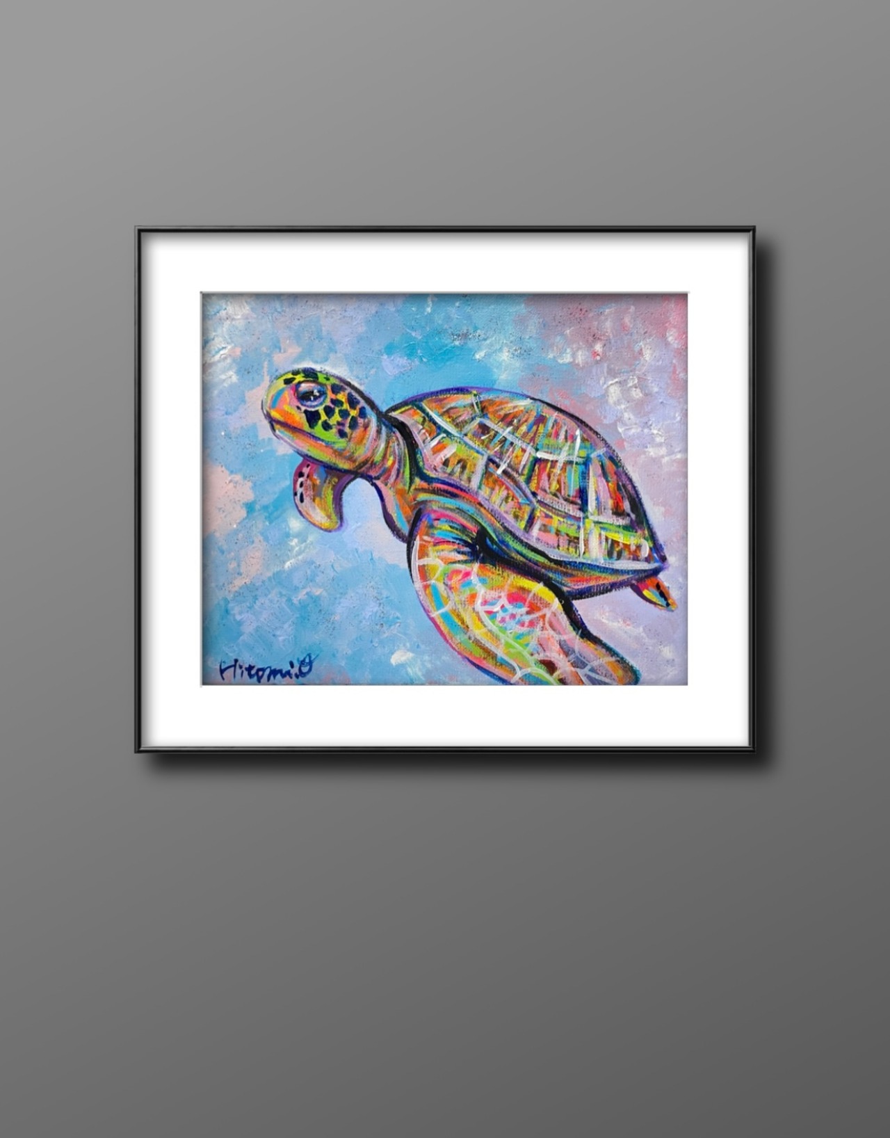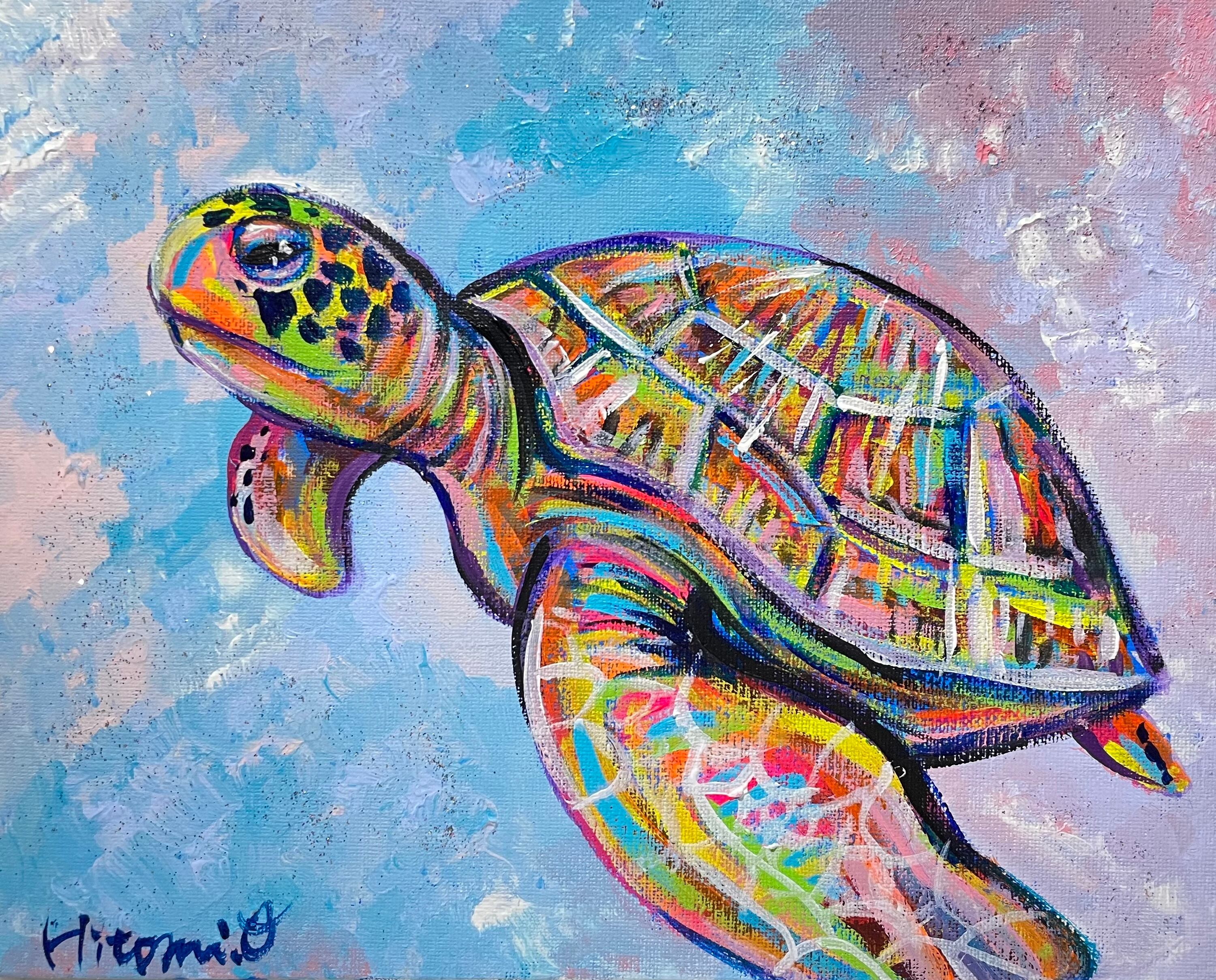 【A-110/23】アクリル画 原画 絵画 現代アート キャンバス 真作 ウミガメ