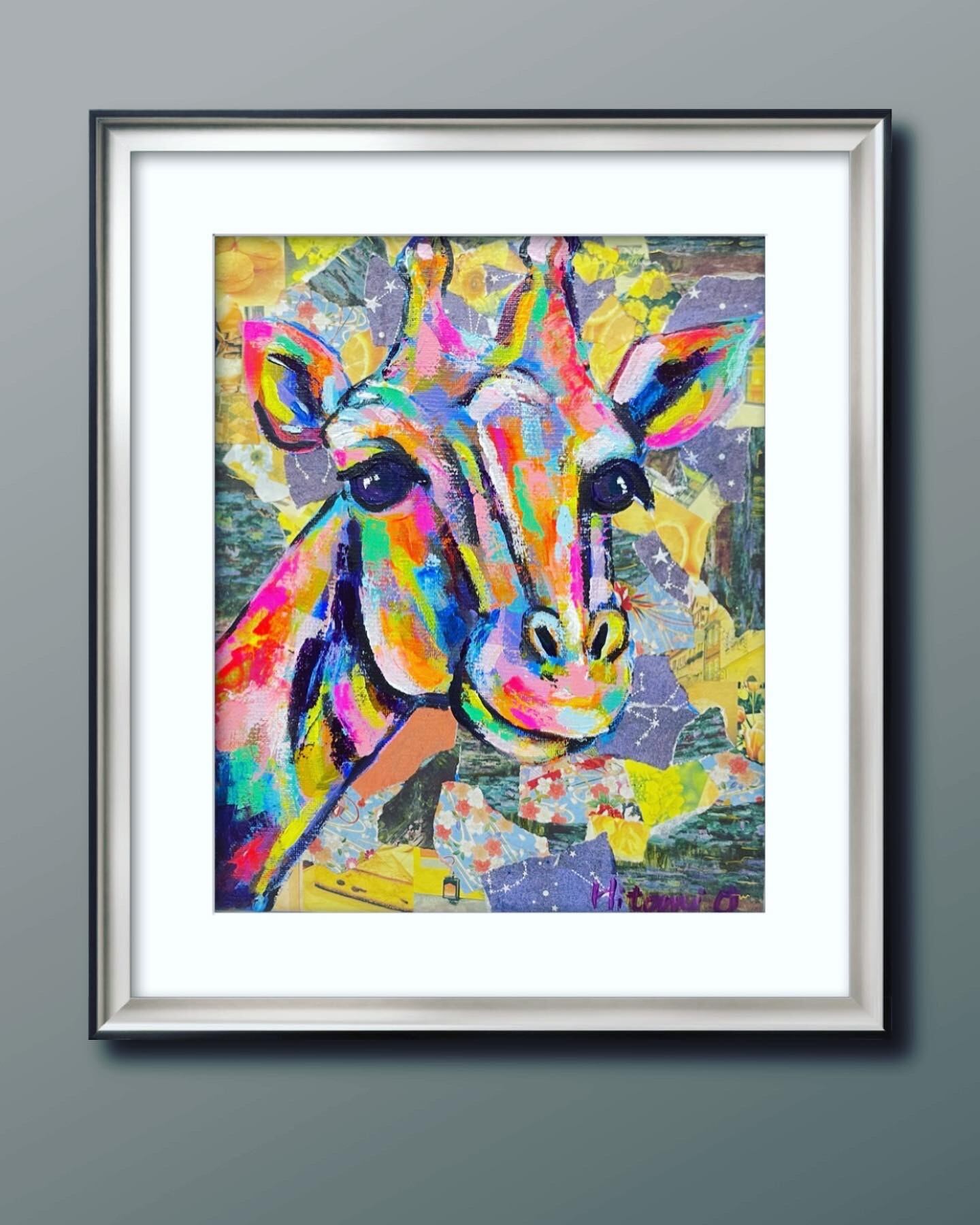 【Y-47/23】油彩画 油絵 原画 絵画 現代アート 真作 動物画 キリン