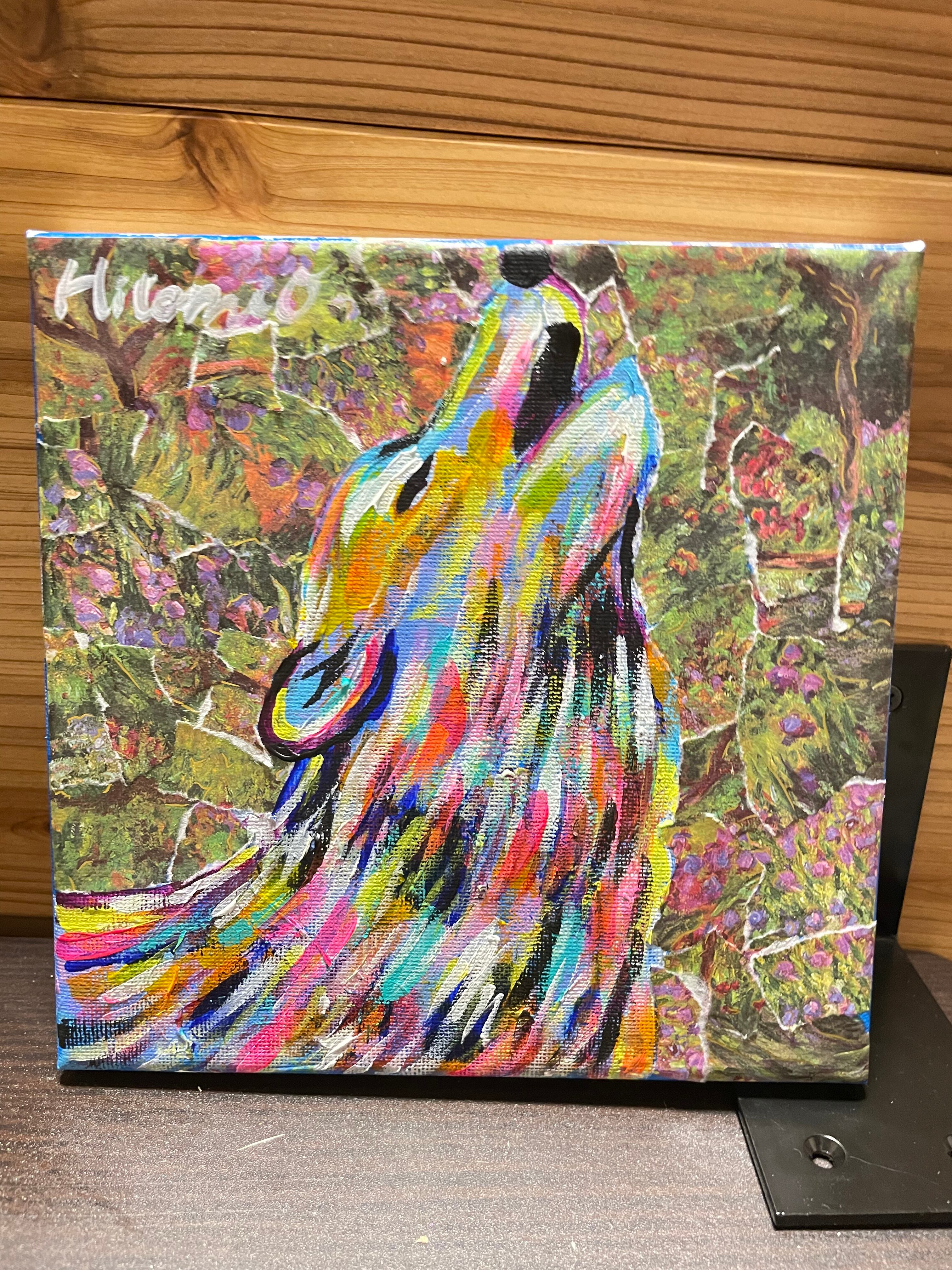 【A-115/23】アクリル画 原画 絵画 現代アート キャンバス 真作 動物画 オオカミ 狼