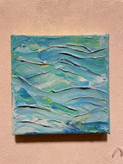 朝の静かな波打ち際を表現した抽象画です。