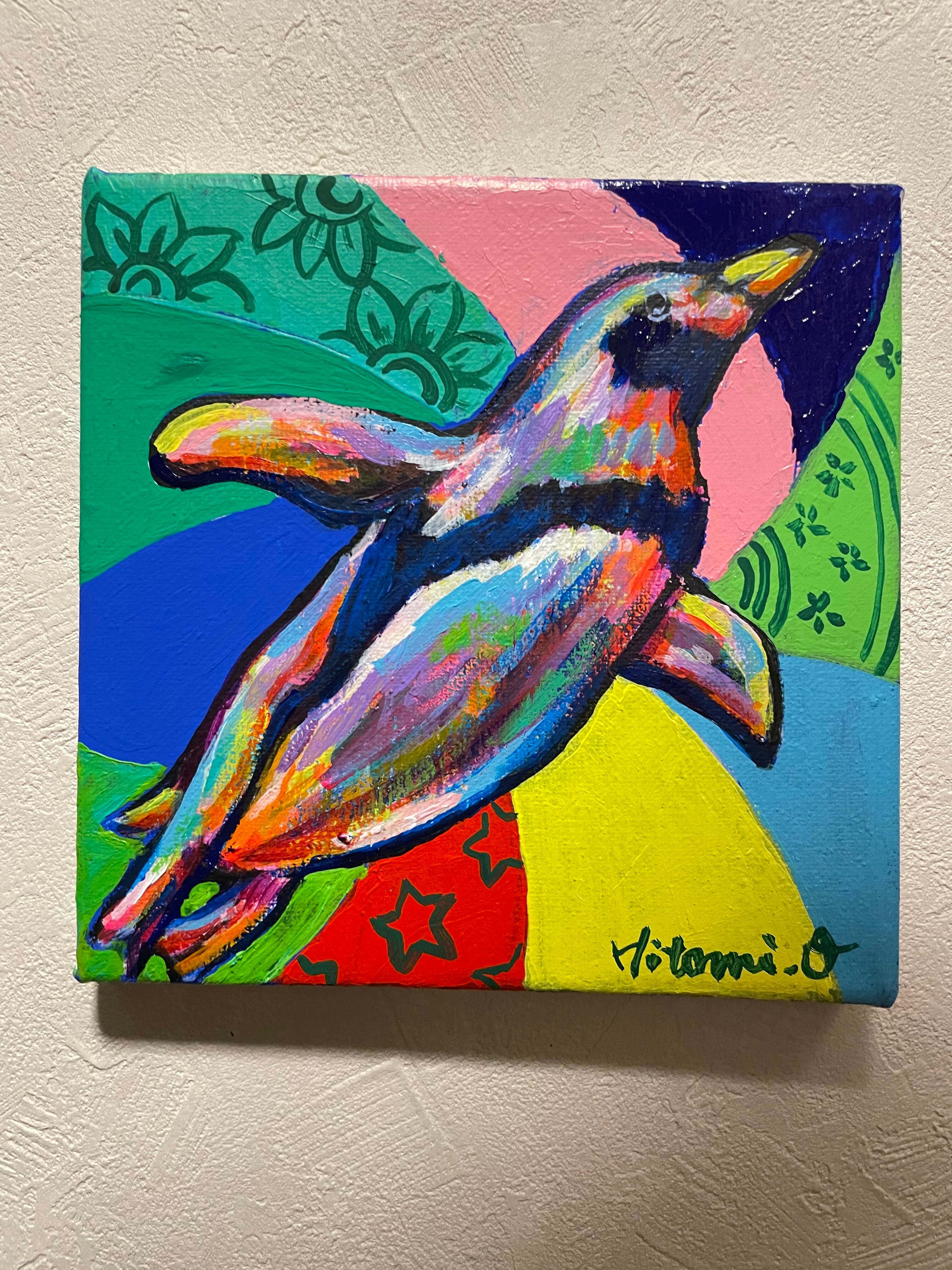 【A-2/24】動物画 ペンギン アクリル画 原画 絵画 現代アート キャンバス 真作 インテリア ドローイング