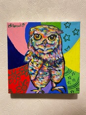 【A-3/24】動物画 フクロウ アクリル画 原画 絵画 現代アート キャンバス 真作 インテリア ドローイング