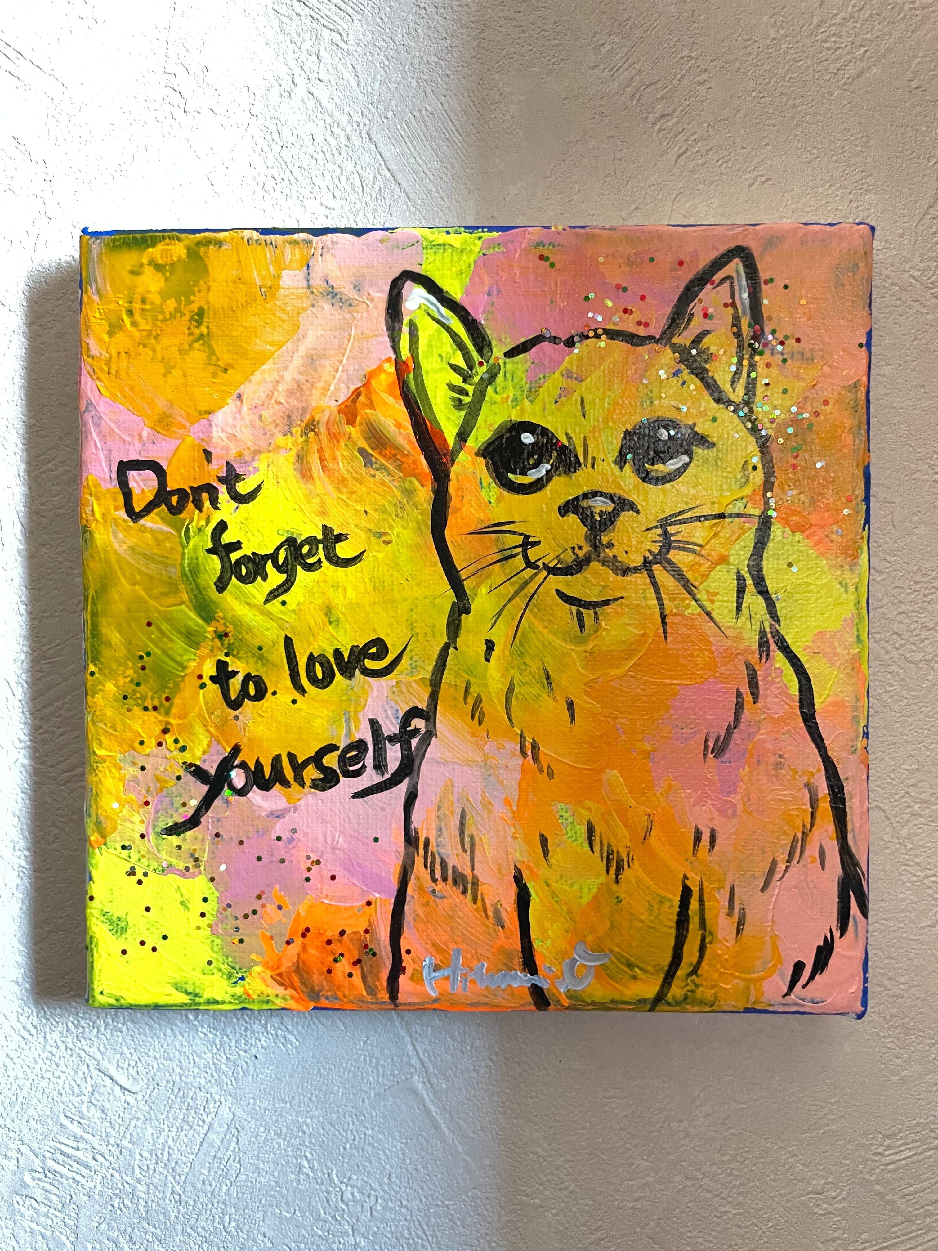 【A-5/24】動物画 猫 アクリル画 原画 絵画 現代アート キャンバス 真作 インテリア ドローイング