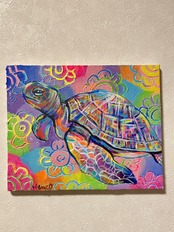 【A-14/24】動物画 ウミガメ アクリル画 原画 絵画 現代アート キャンバス 真作 インテリア ドローイング