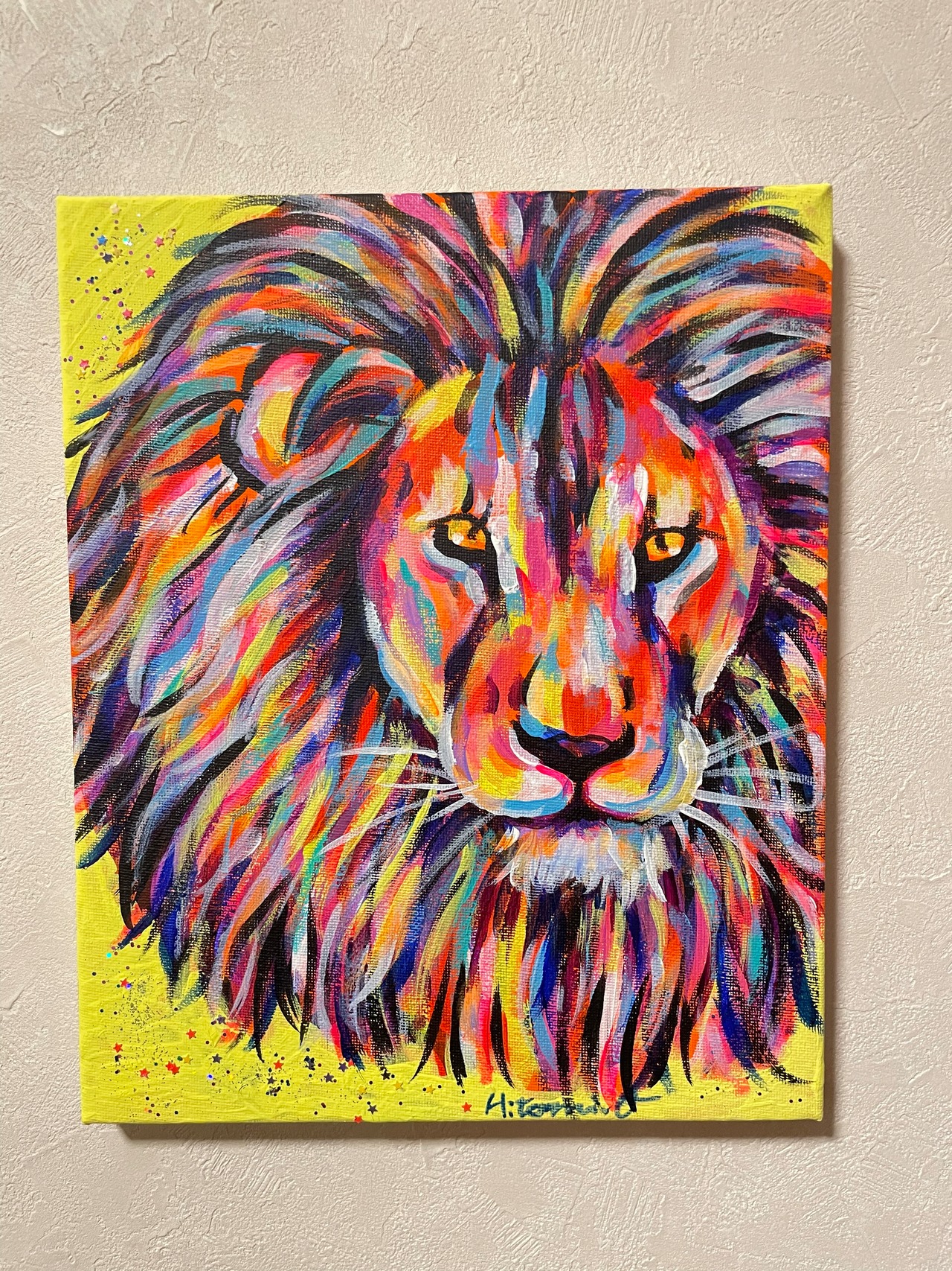 【A-19/24】動物画 ライオン アクリル画 原画 絵画 現代アート キャンバス 真作 インテリア ドローイング