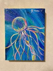 【A-50/24】動物画 クラゲ アクリル画 原画 絵画 現代アート キャンバス 真作 インテリア ドローイング