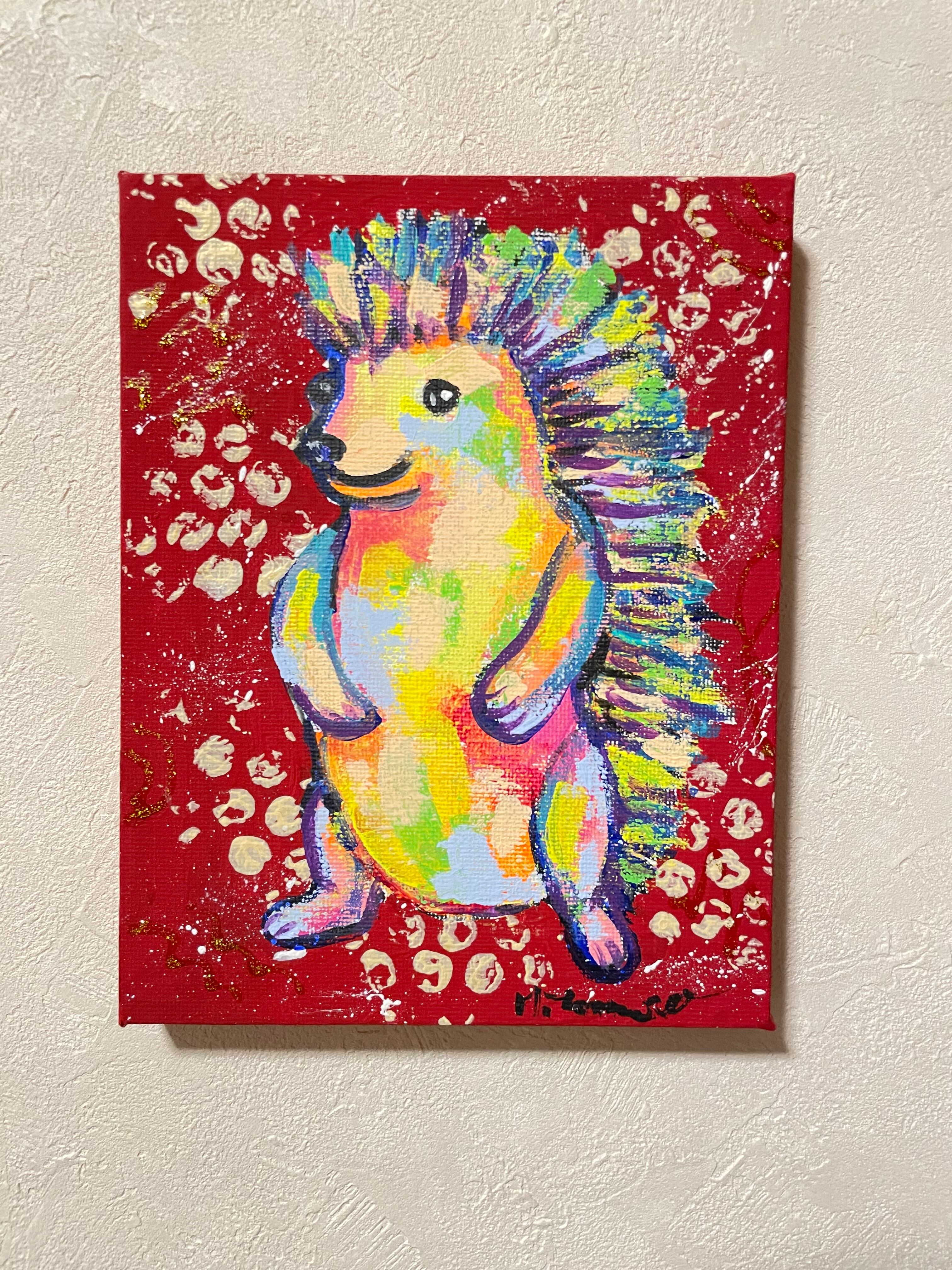 【A-59/24】動物画 ハリネズミ アクリル画 原画 絵画 現代アート キャンバス 真作 インテリア ドローイング