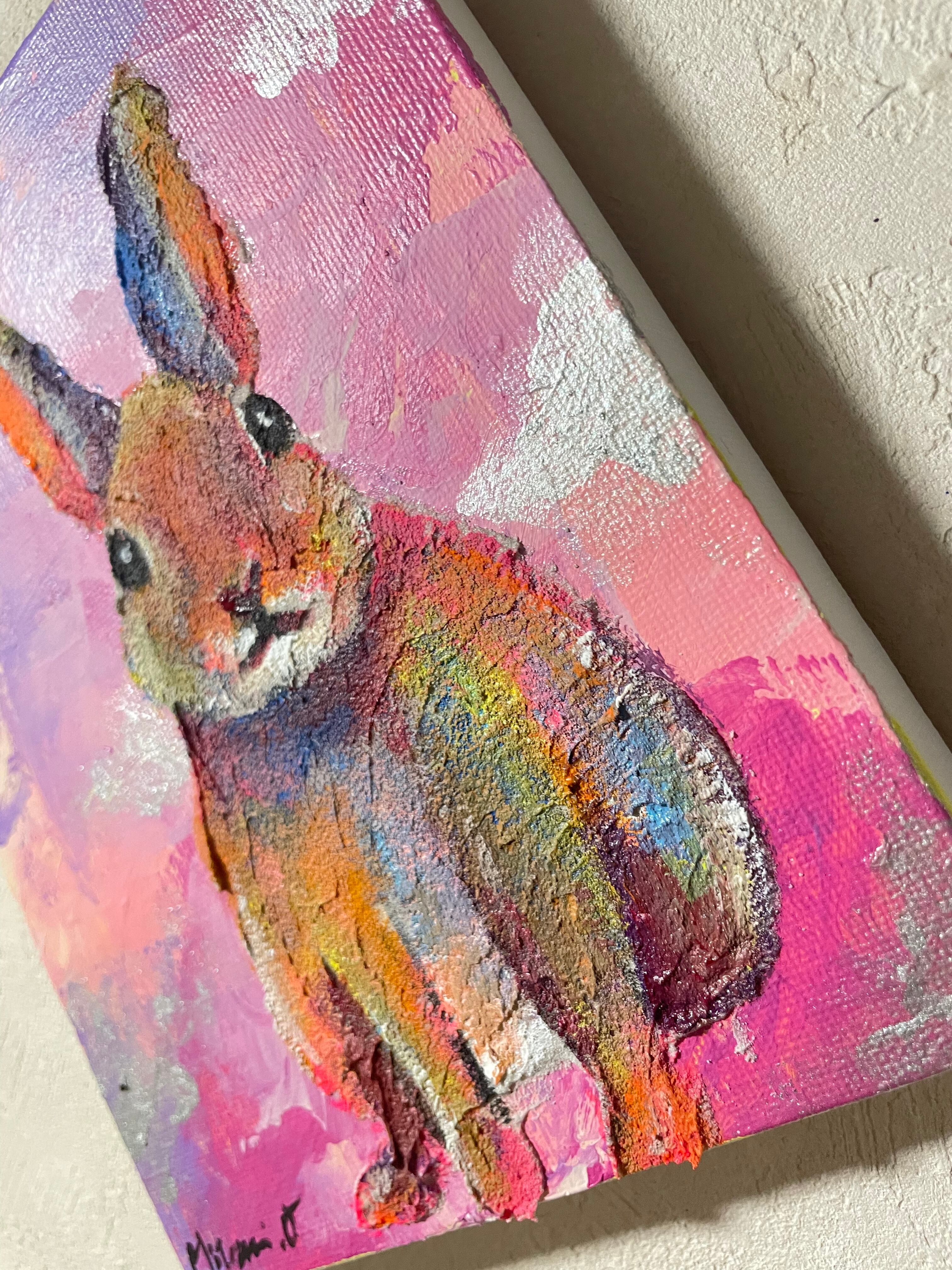 【A-89/24】動物画 ウサギ 絵画 現代アート キャンバス 真作 インテリア ドローイング