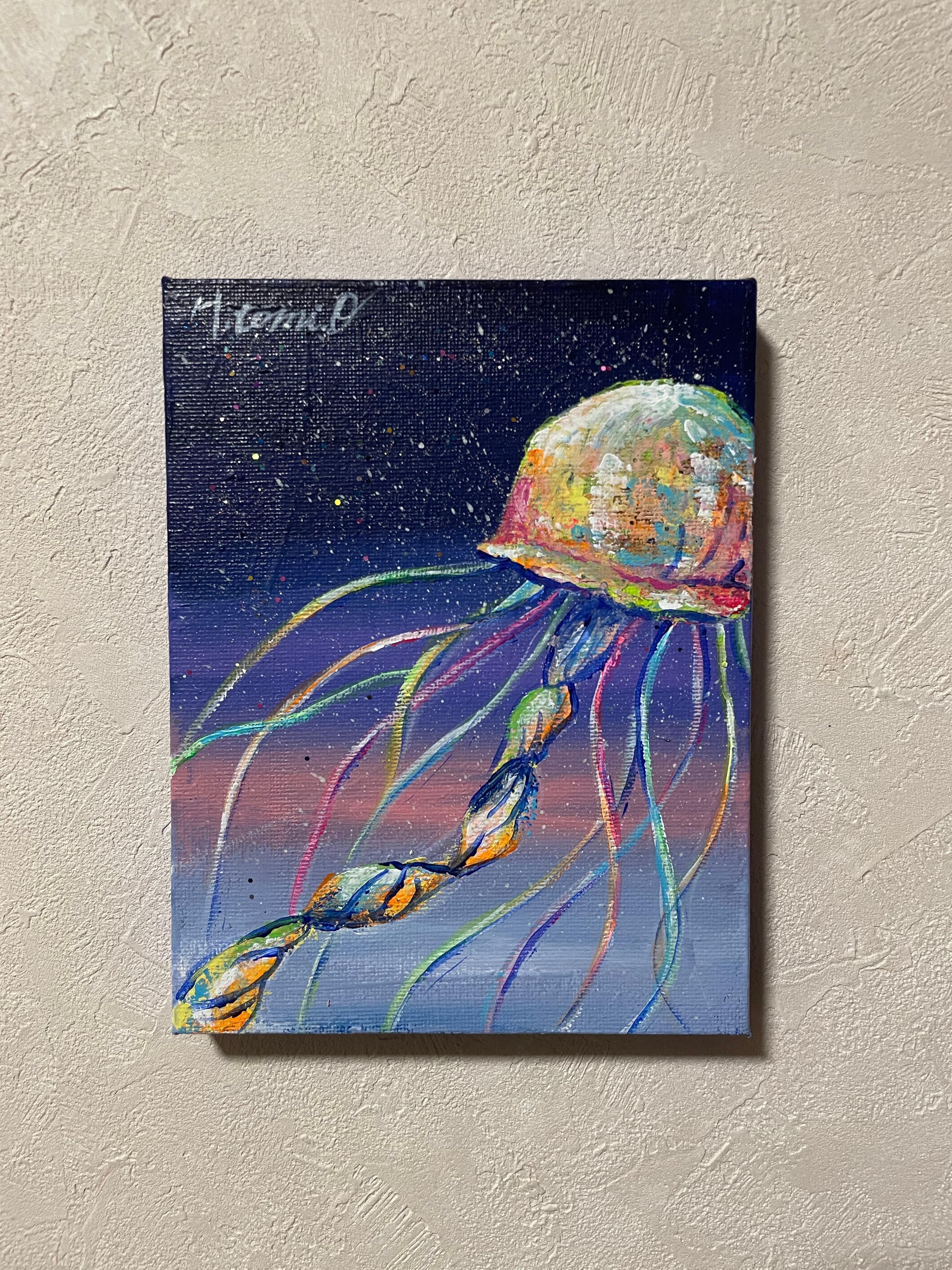 【A-114/24】動物画 クラゲ 原画 絵画 現代アート キャンバス 真作 インテリア 作品証明書付 アート