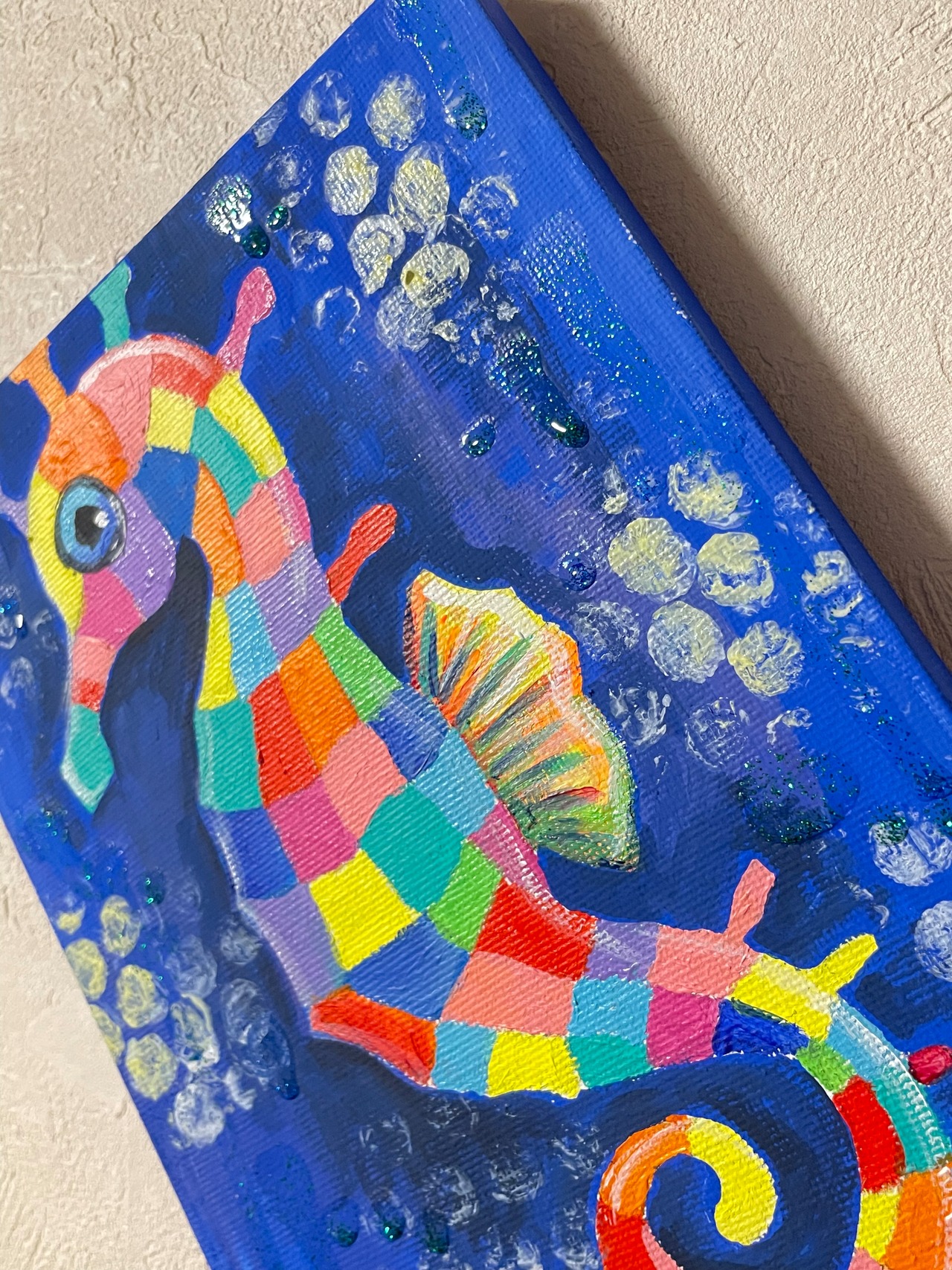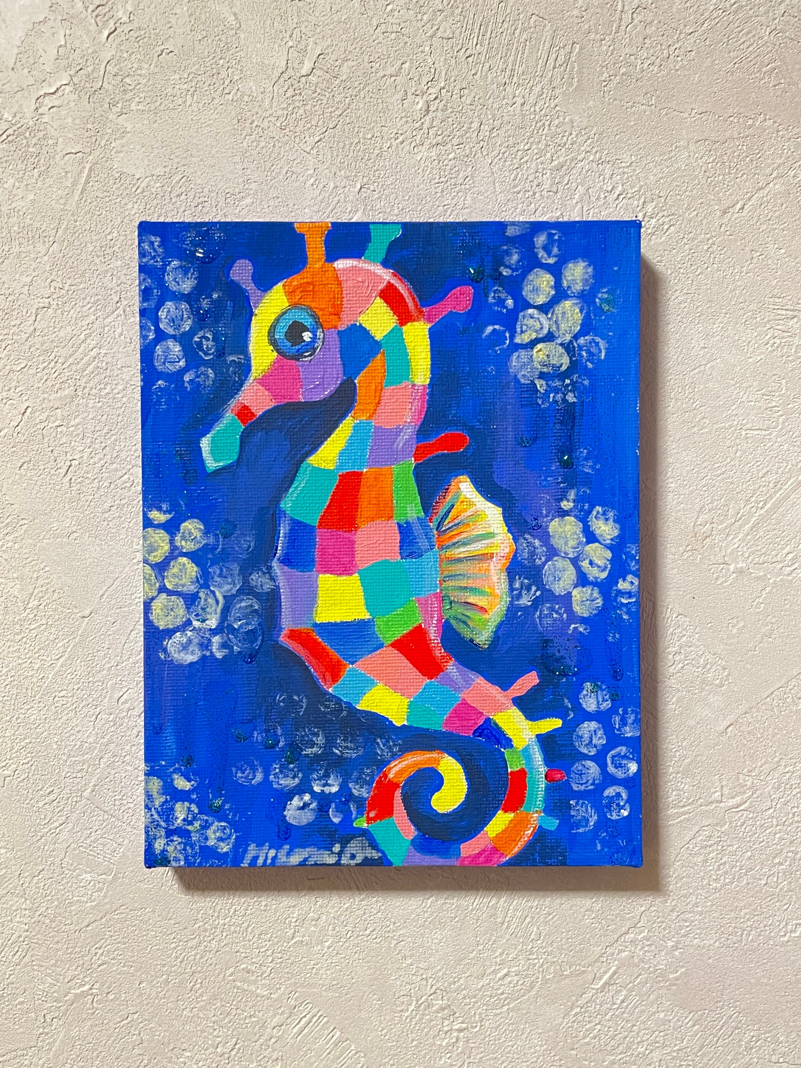 【A-126/24】動物画 タツノオトシゴ 原画 絵画 現代アート キャンバス 真作 インテリア 作品証明書付 アート