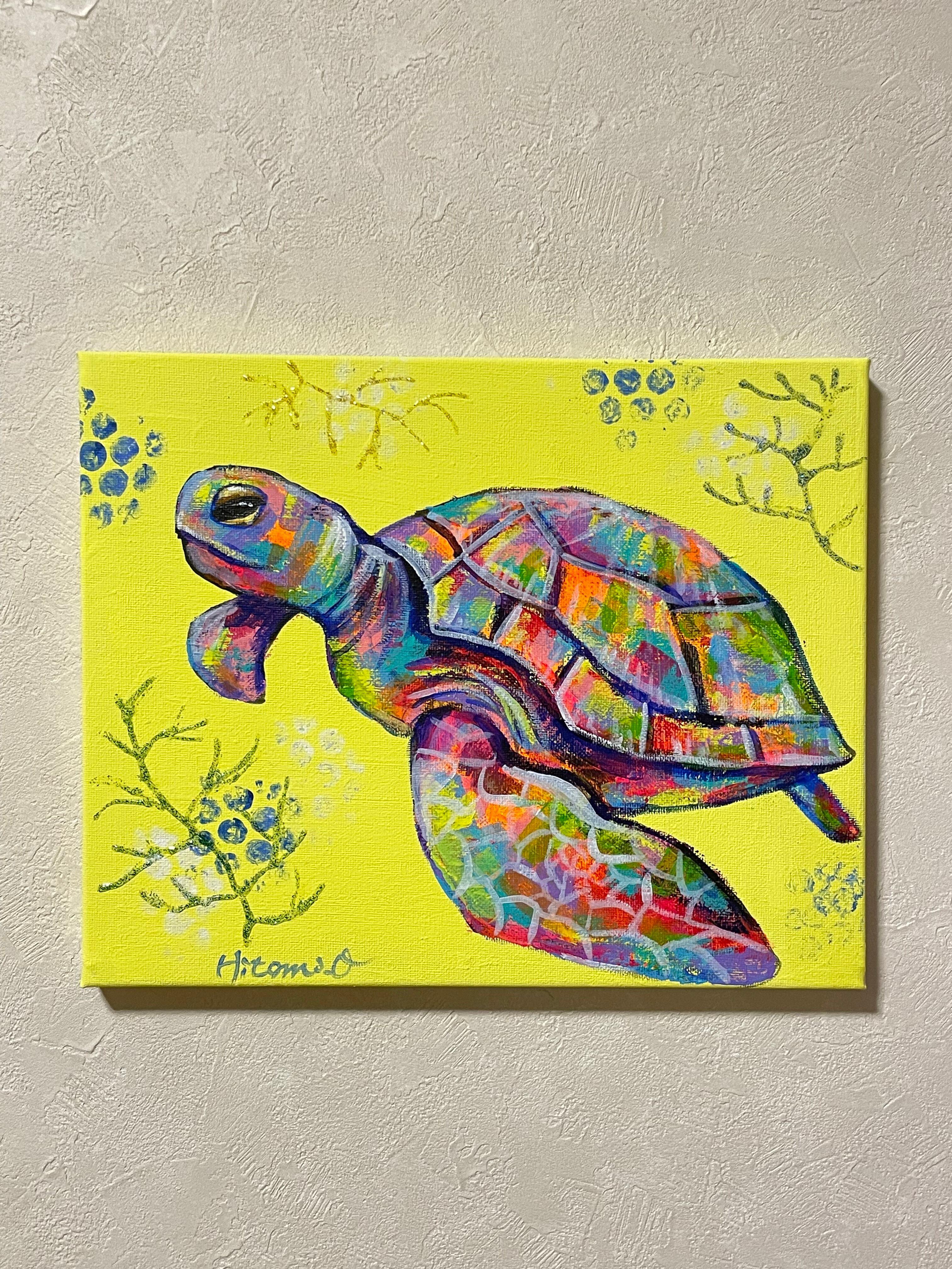 【A-127/24】動物画 ウミガメ 原画 絵画 現代アート キャンバス 真作 インテリア 作品証明書付 アート