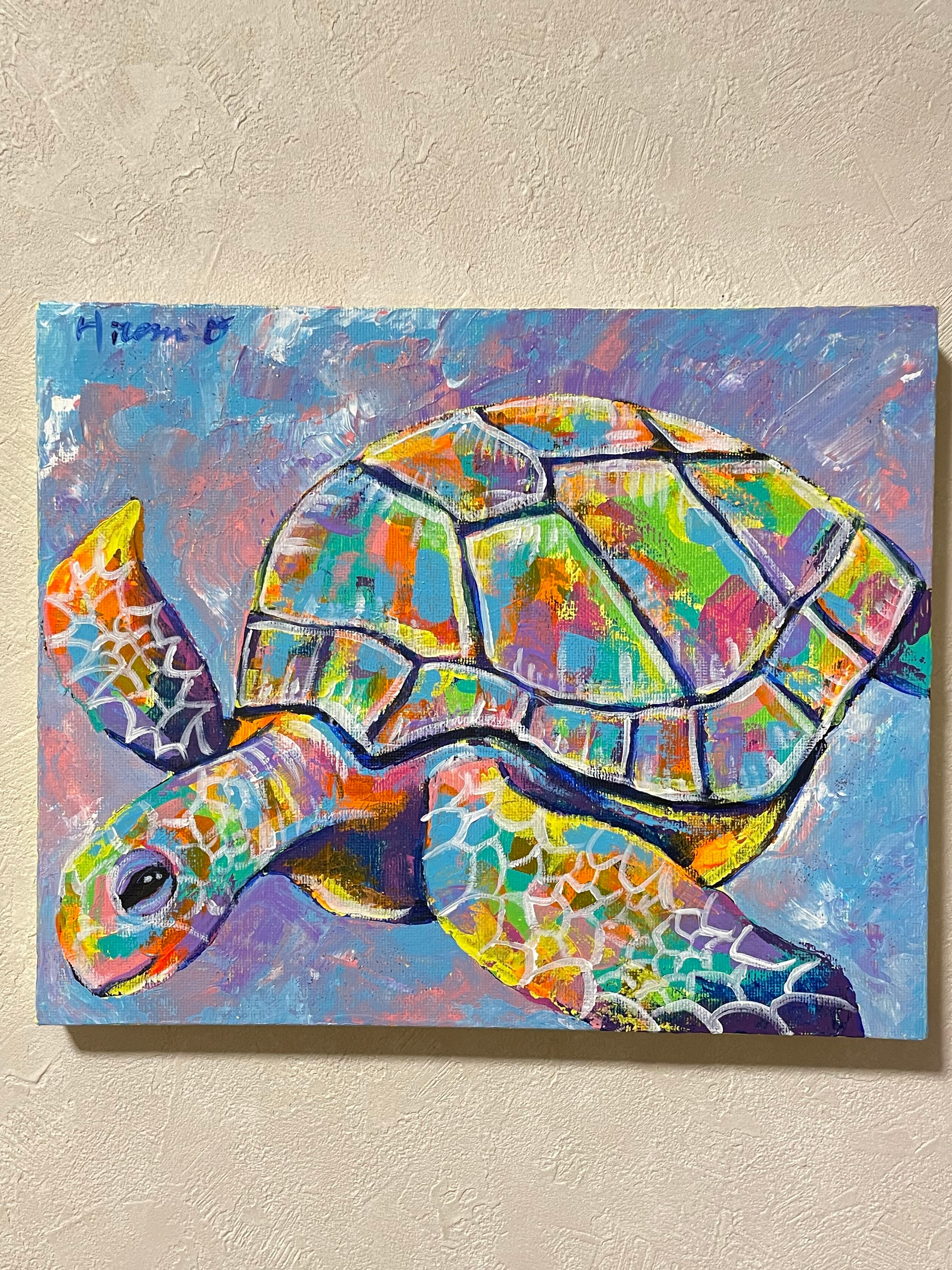 【A-132/24】動物画 ウミガメ 原画 絵画 現代アート キャンバス 真作 インテリア 作品証明書付 アート