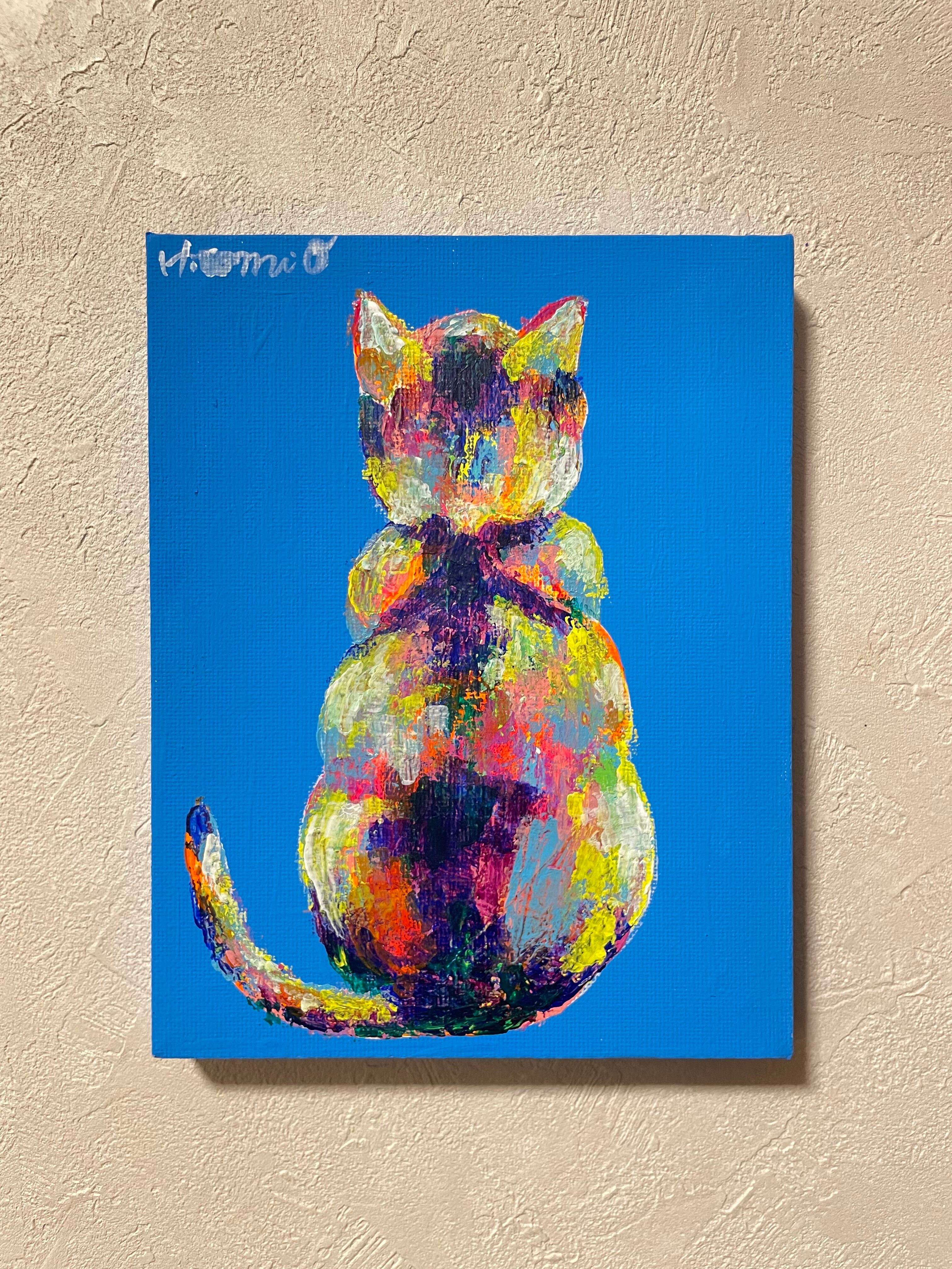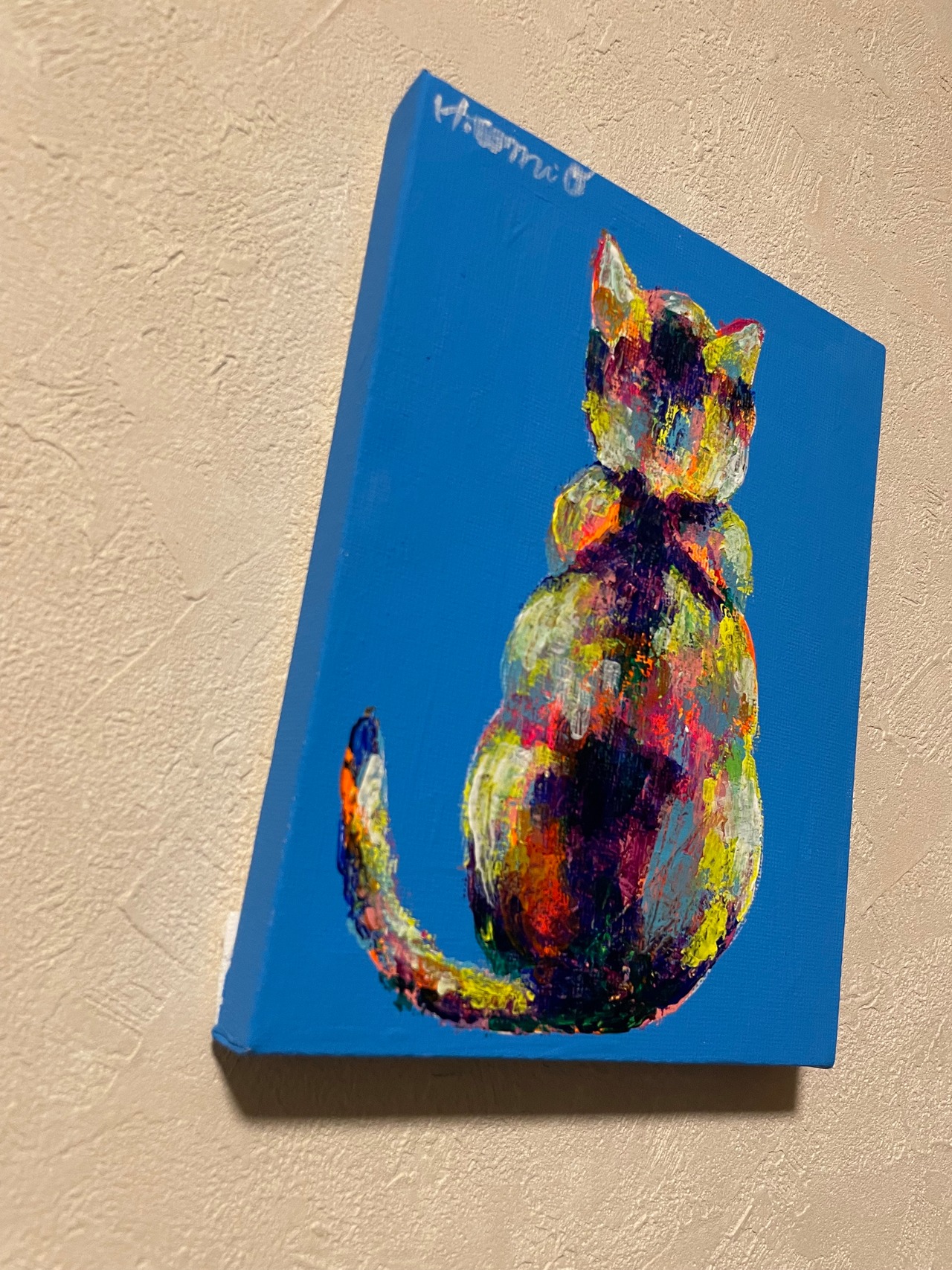 【A-157/24】動物画 猫 絵画 キャンバス 真作 インテリア 作品証明書付 アート 現代アート