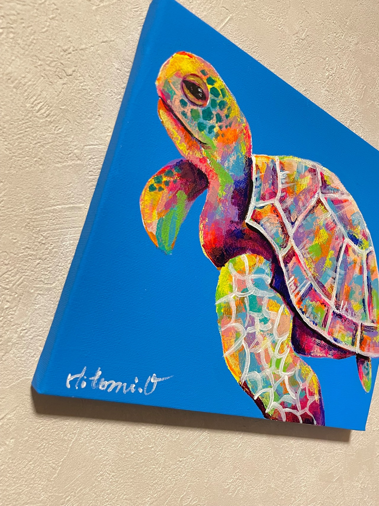 【A-162/24】動物画 ウミガメ 絵画 キャンバス 真作 インテリア 作品証明書付 アート 現代アート