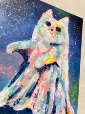【A-195/24】抽象画 動物画 ハロウィン ネコ 猫 星空 夜空 絵画 キャンバス 真作 インテリア 作品証明書付 アート 現代アート