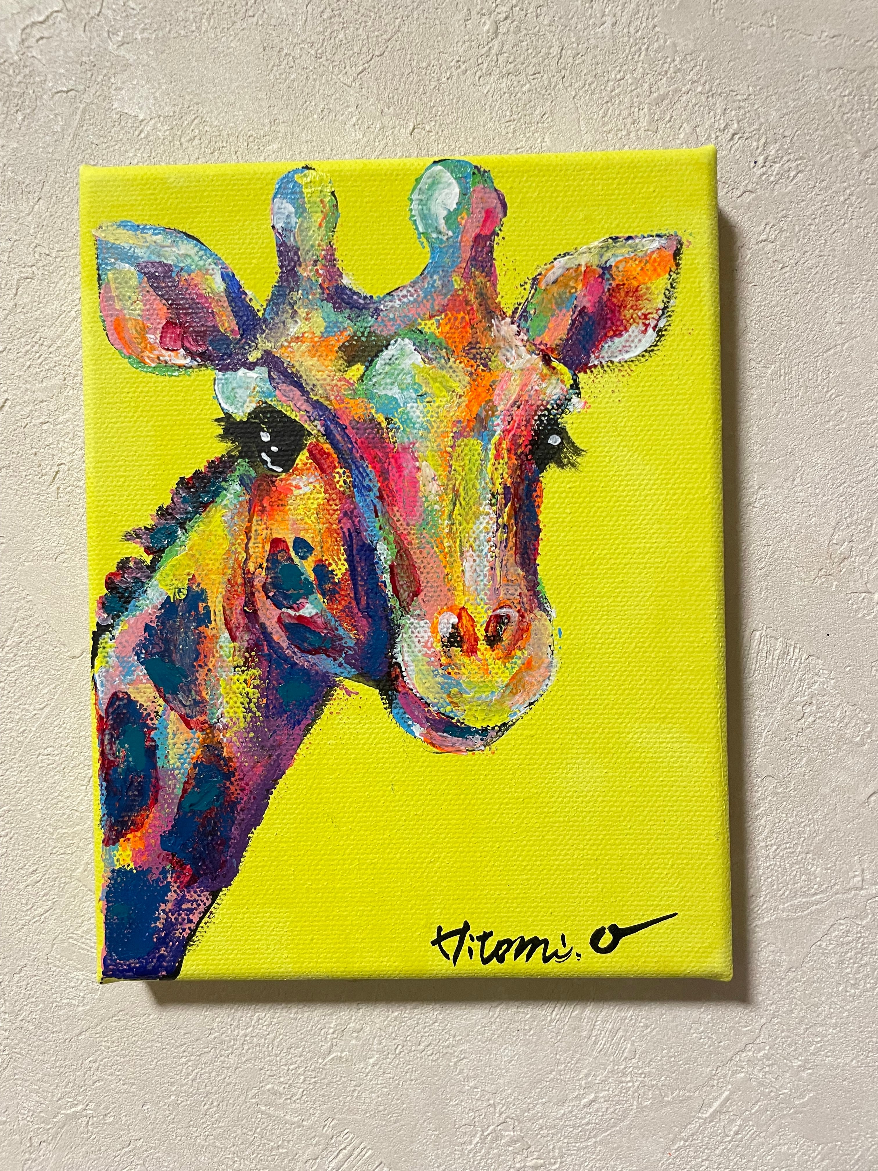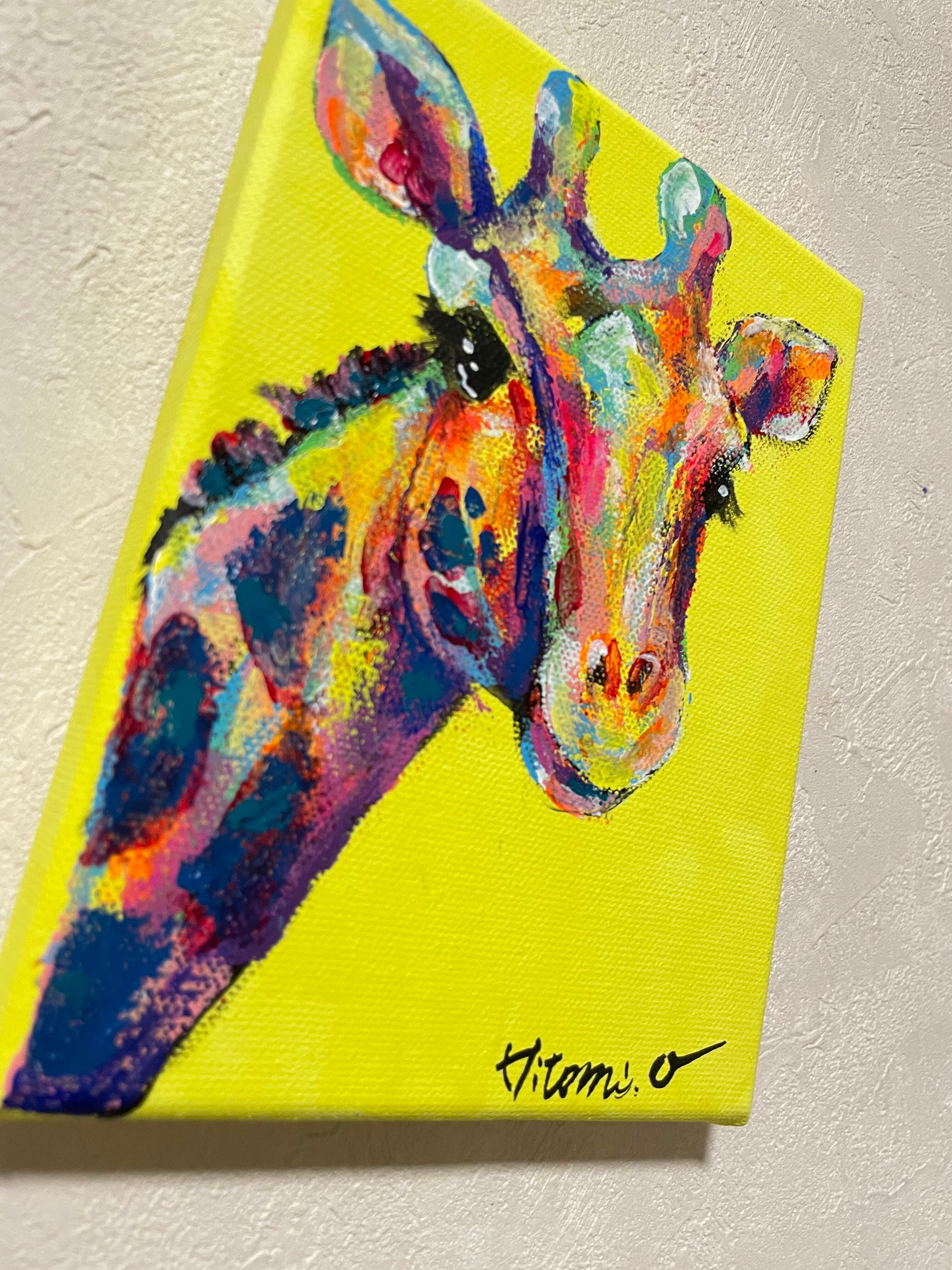 【A-197/24】動物画 キリン 絵画 キャンバス 真作 インテリア 作品証明書 アート