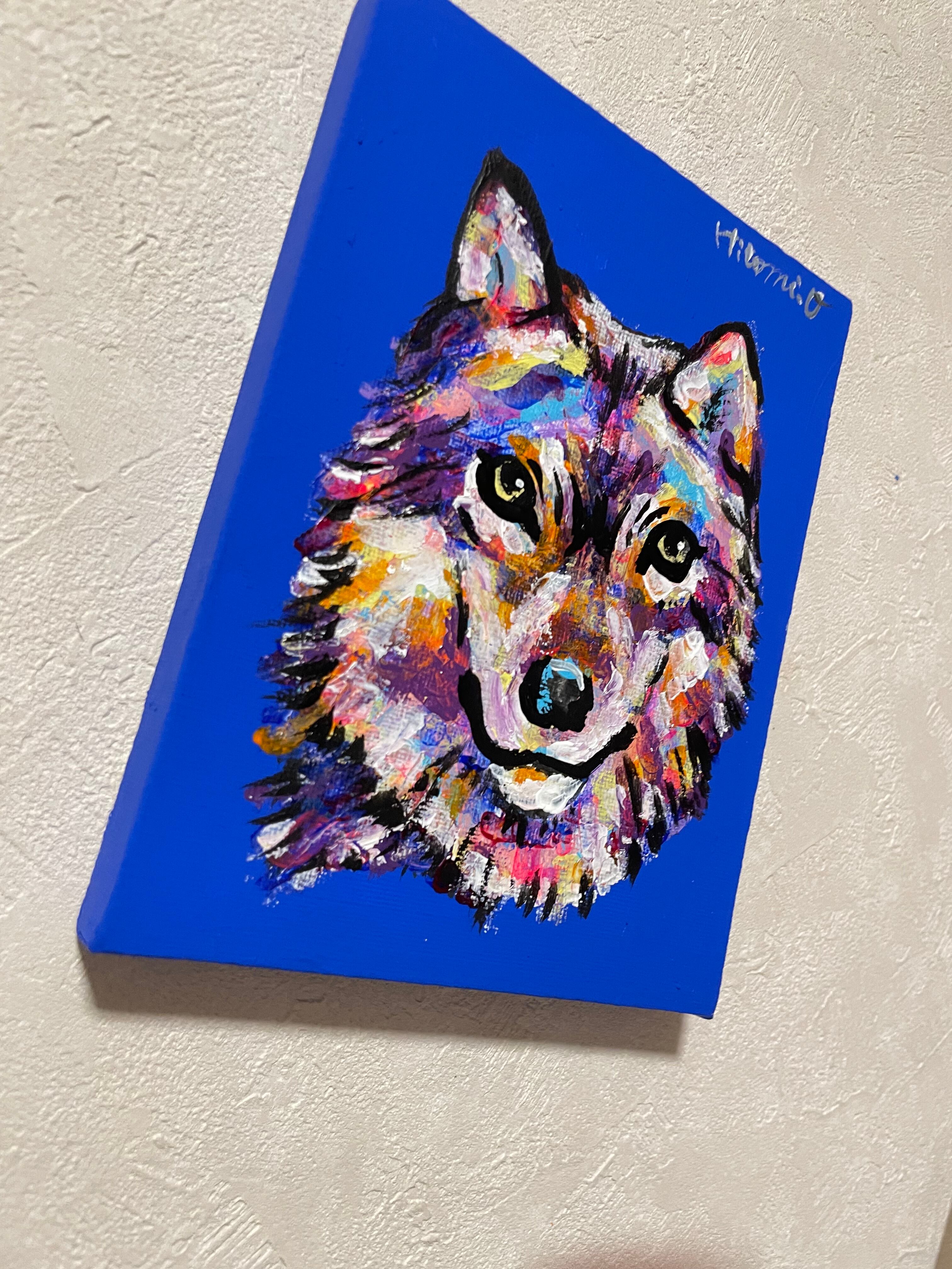 【A-199/24】動物画 オオカミ 狼 絵画 キャンバス 真作 インテリア 作品証明書 アート