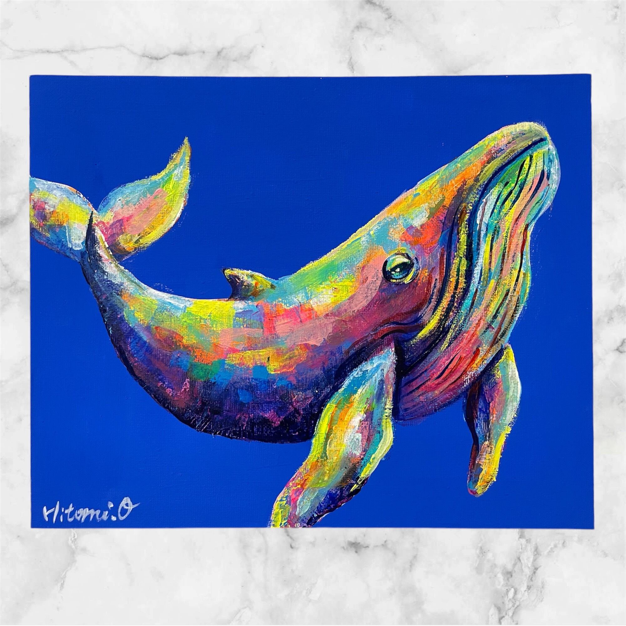 【A-218/24】動物画 クジラ 絵画 キャンバス 真作 インテリア 作品証明書付 アート 現代アート