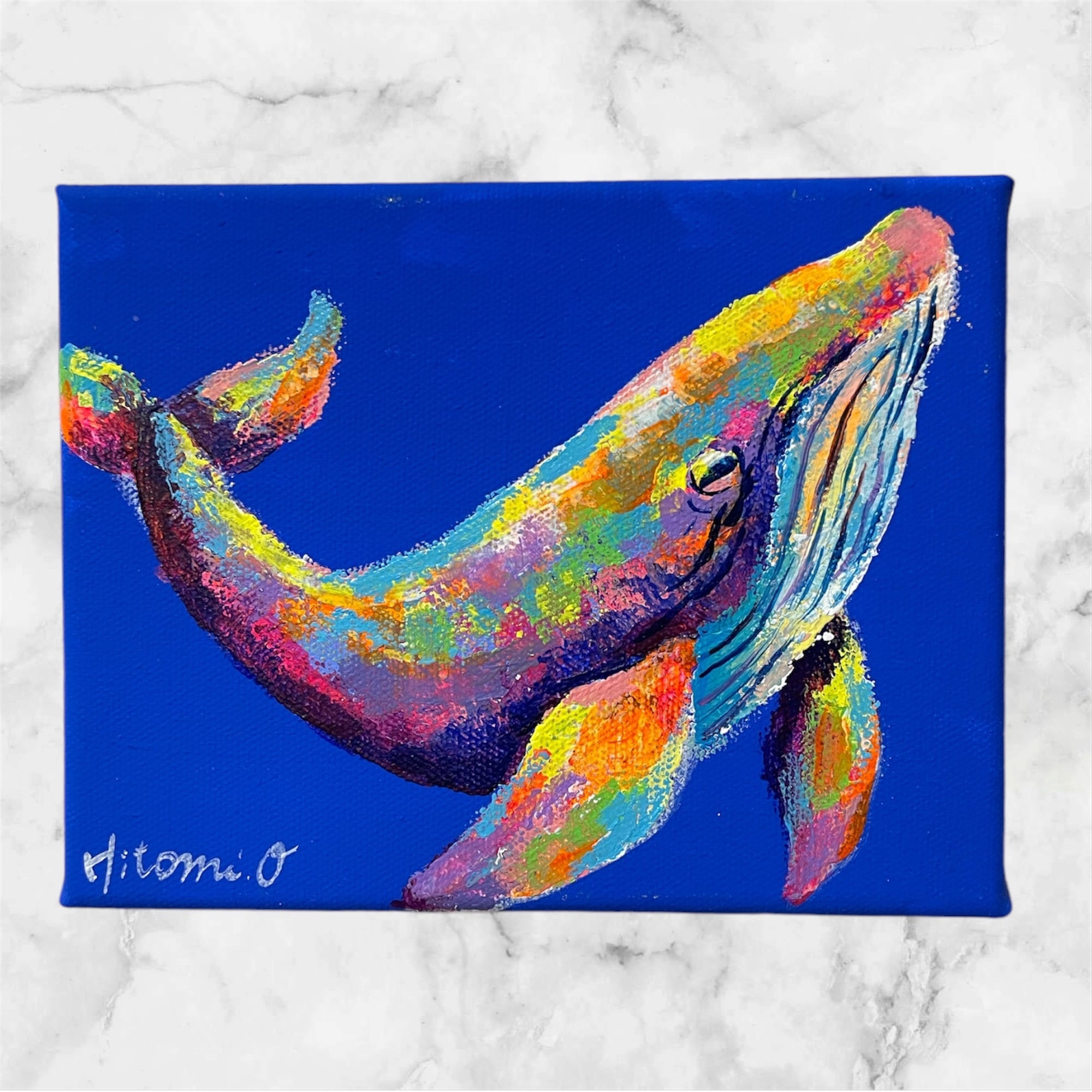 【A-223/24】動物画原画 クジラ 絵画 キャンバス 真作 インテリア 作品証明書付 アート 現代アート ポップアート