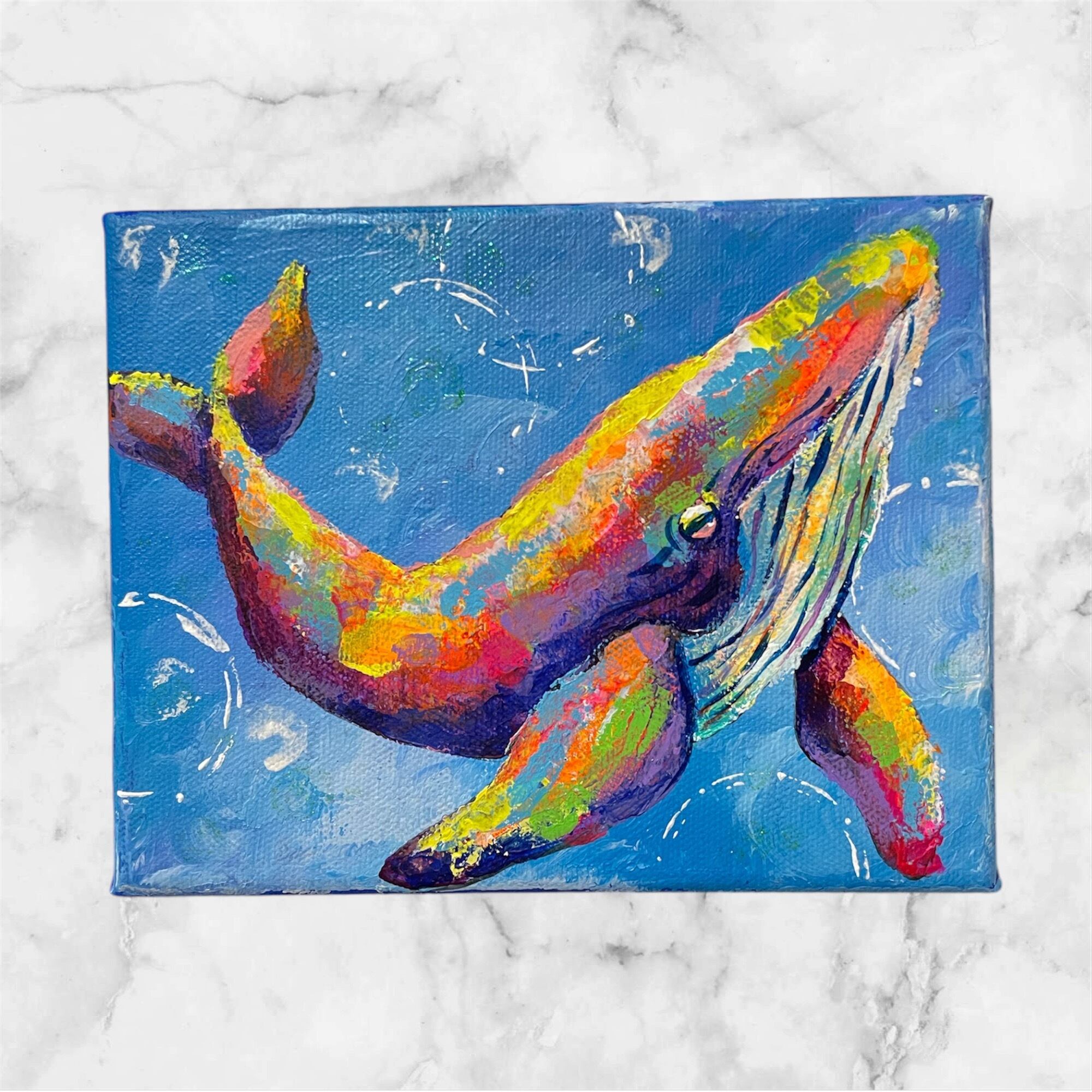 【A-224/24】動物画原画 クジラ 絵画 キャンバス 真作 インテリア 作品証明書付 アート 現代アート ポップアート