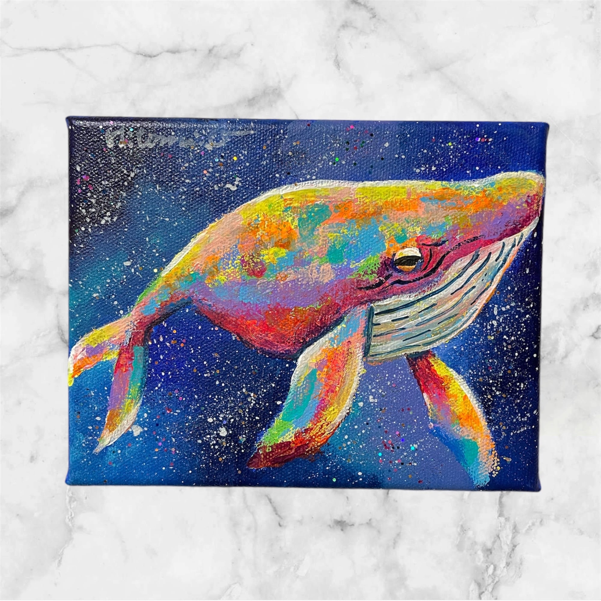 【A-226/24】動物画原画 クジラ 絵画 キャンバス 真作 インテリア 作品証明書付 アート 現代アート ポップアート