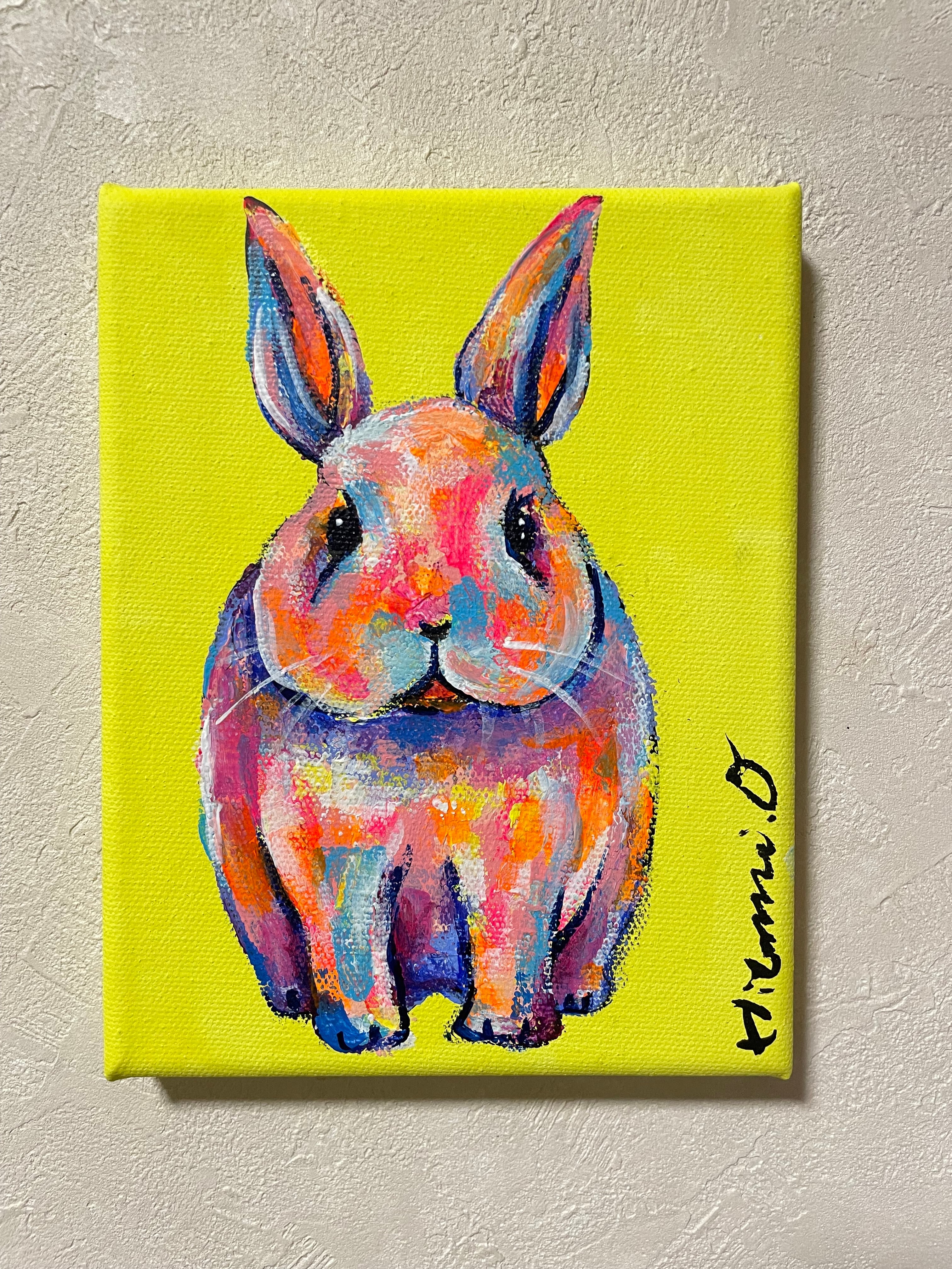 【A-236/24】動物画 原画 ウサギ 絵画 キャンバス 真作 インテリア 作品証明書付 アート 現代アート ポップアート