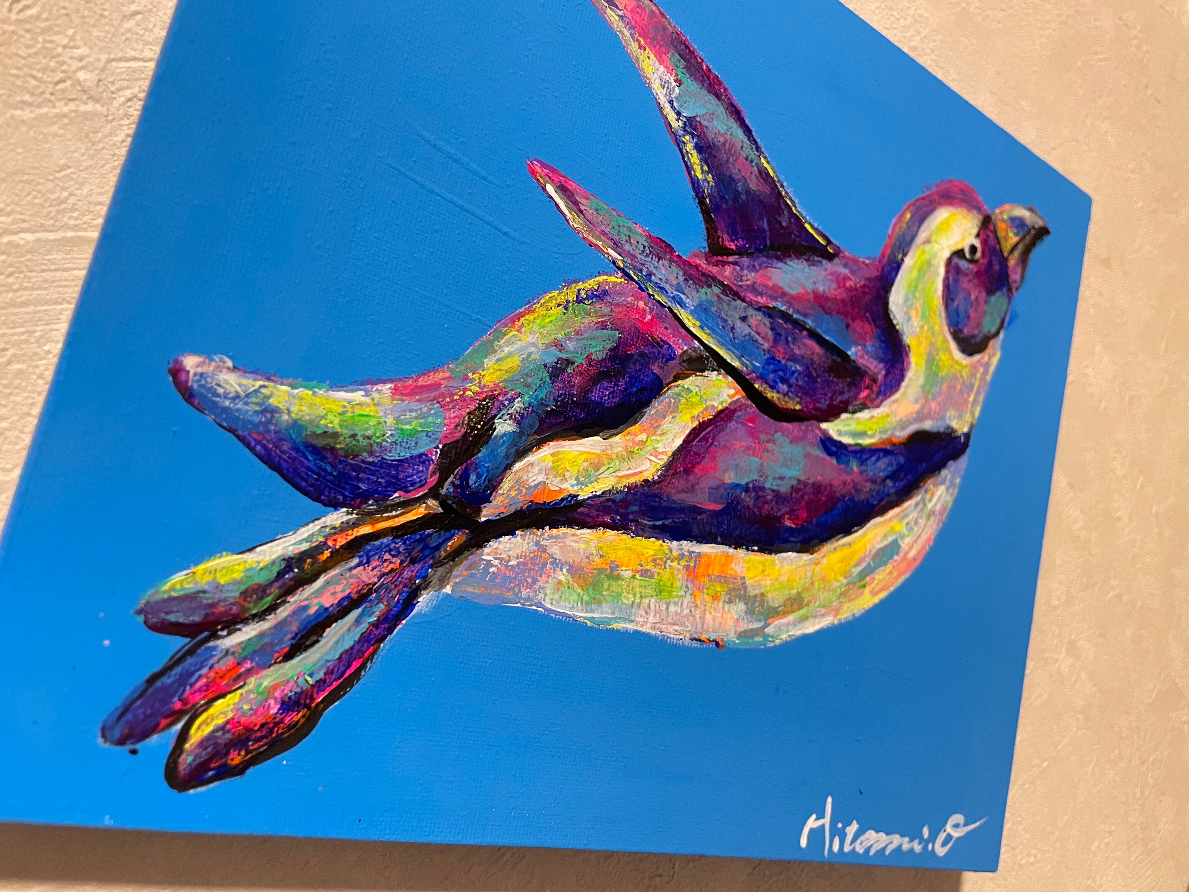 【A-238/24】動物画原画 ペンギン 絵画 キャンバス 真作 インテリア 作品証明書付 アート 現代アート ポップアート アートワーク