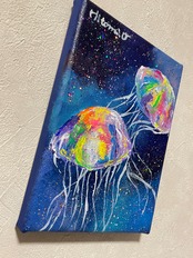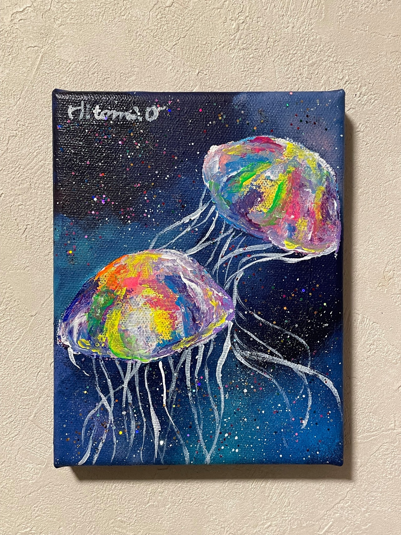 【A-239/24】動物画 原画 クラゲ 海月 絵画 キャンバス 真作 インテリア 作品証明書付 アート 現代アート ポップアート