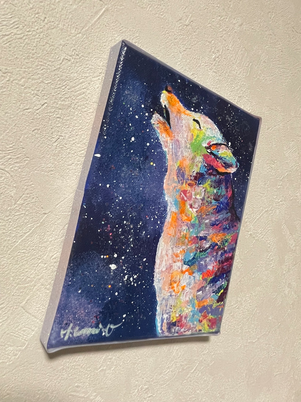 【A-8/25】原画 動物画 オオカミ 絵画 キャンバス 真作 インテリア 作品証明書付 アート 現代アート ポップアート